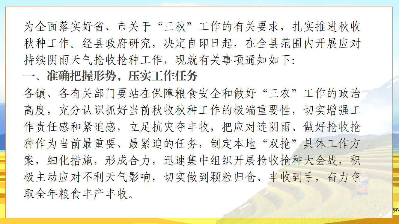​图解:凤县人民政府办公室关于应对近期连阴雨天气抓好当前“三秋”抢收抢种工作的紧急通知