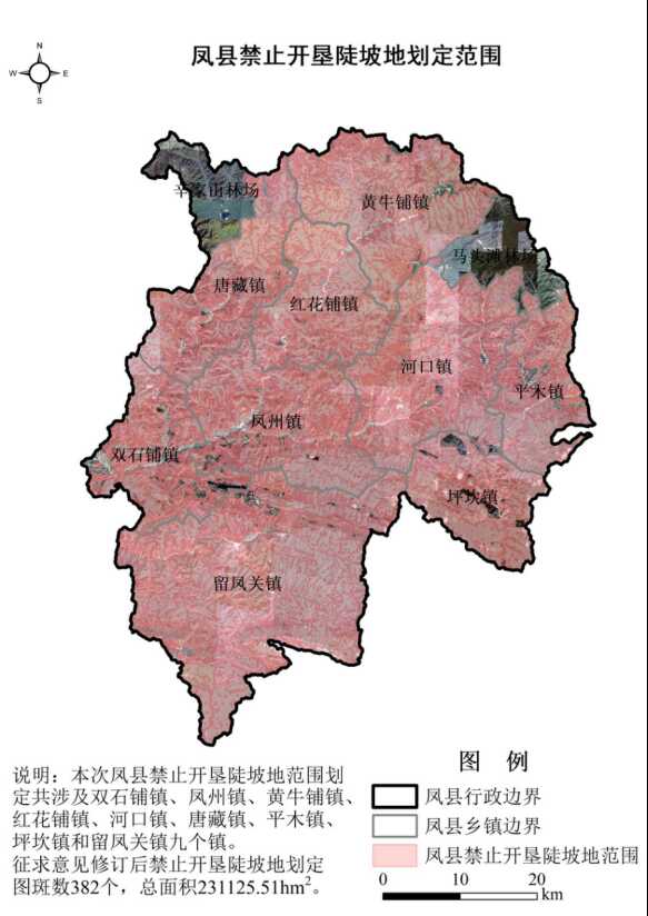 一、依据水利部《禁止开垦陡坡地范围划定技术指南》,划定全县禁止开垦陡坡地面积231125.51公顷,涉及双石铺镇、凤州镇、黄牛铺镇、红花铺镇、河口镇、唐藏镇、平木镇、坪坎镇、留凤关镇9个乡镇。具体分布面积和范围见附件。