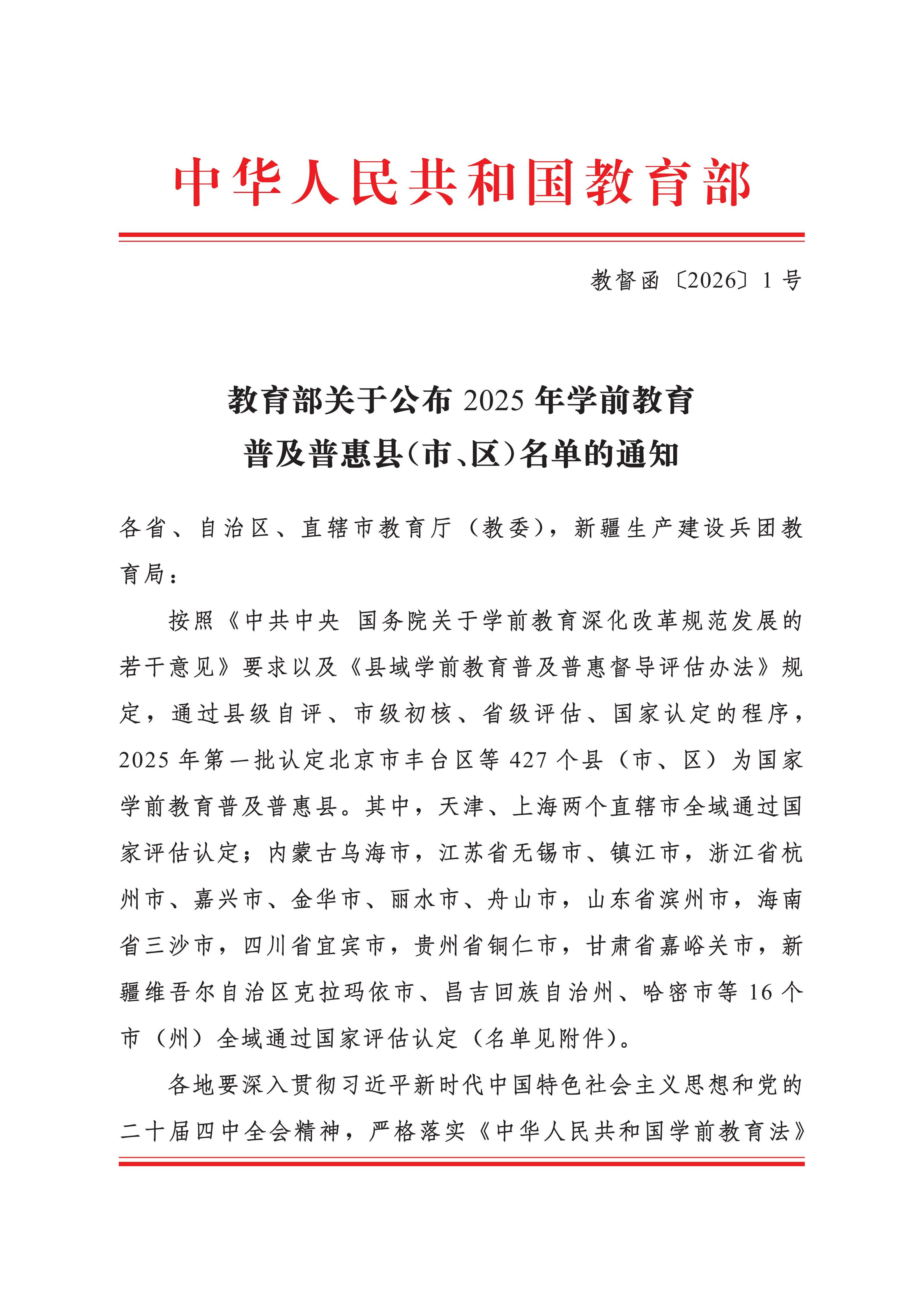 近日,教育部公布了2025年学前教育普及普惠县(市、区)名单,凤县成功创建为国家学前教育普及普惠县。这是凤县继2025年创建为国家义务教育优质均衡发展县之后,又获得的一项国家级殊荣。凤县成为宝鸡市首批完成“两项创建”工作的县之一。