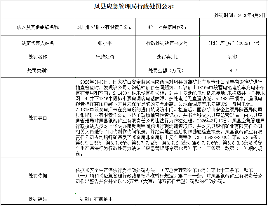 行政处罚公示2026年7号