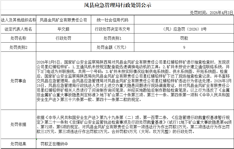 行政处罚公示2026年8号