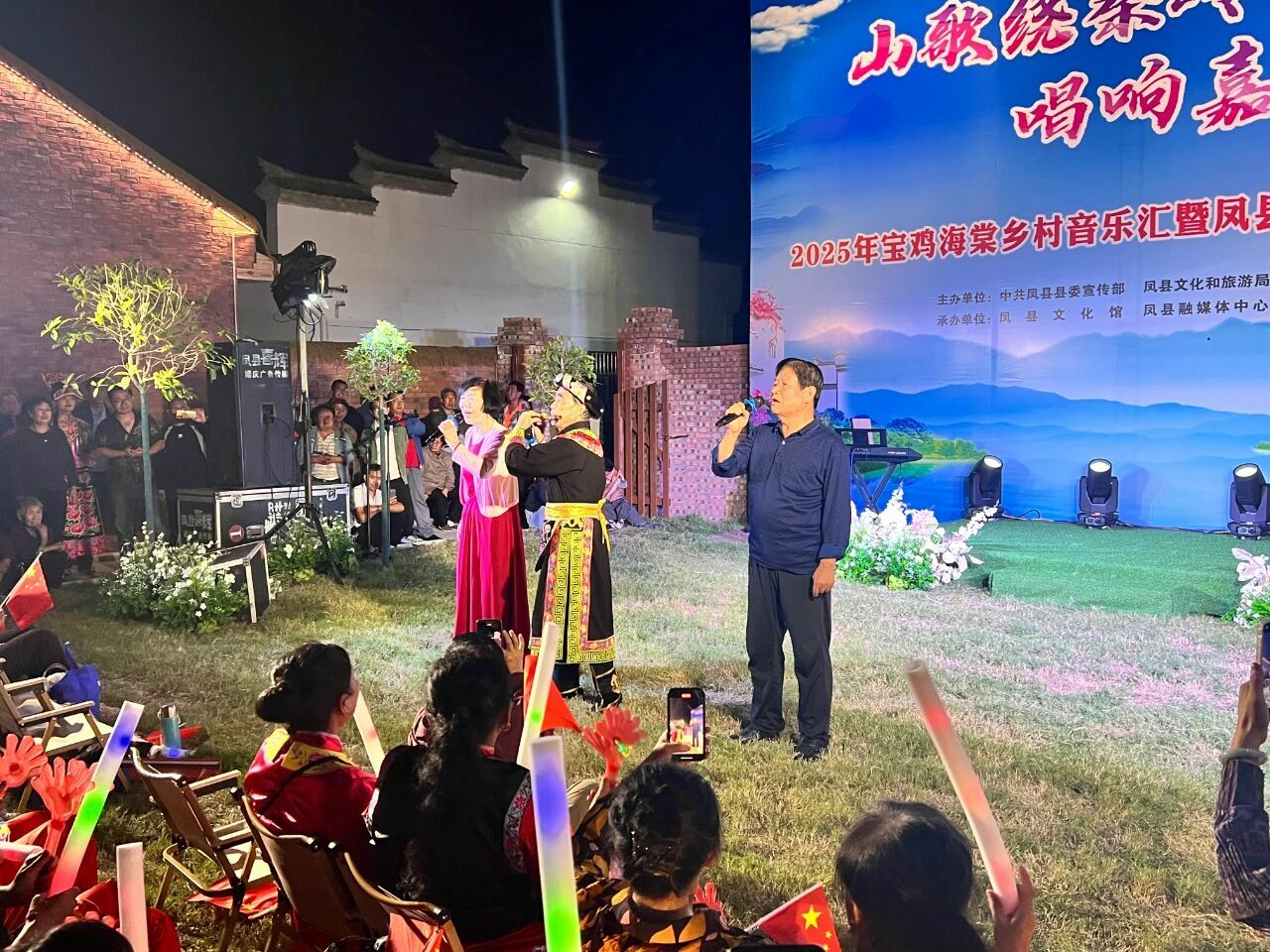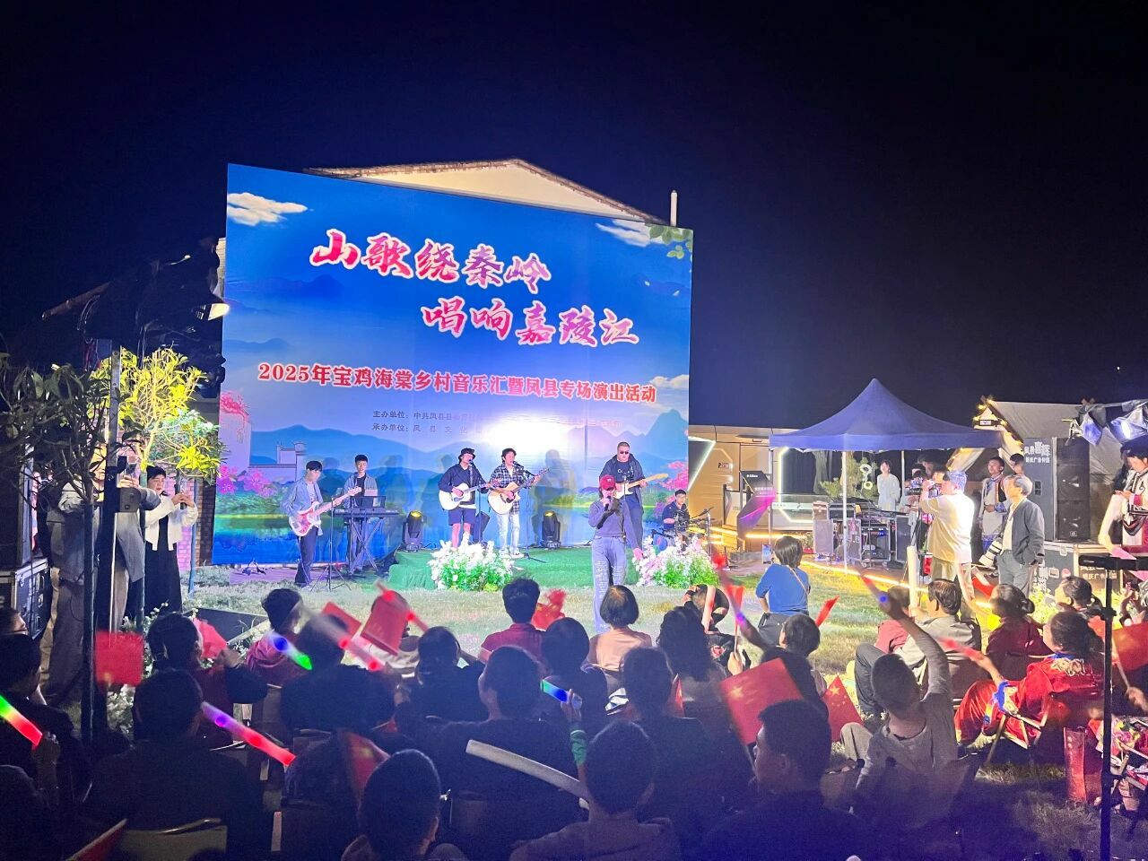 9月9日晚,在观众们热烈的欢呼声与掌声中,宝鸡海棠乡村音乐汇暨凤县专场演出活动在凤县凤州镇马鞍山村盛大开启。本次活动由凤县县委宣传部、凤县文化和旅游局、凤州镇人民政府主办,凤县文化馆、凤县融媒体中心承办,为凤县的夜晚增添了一抹绚丽的文化色彩。