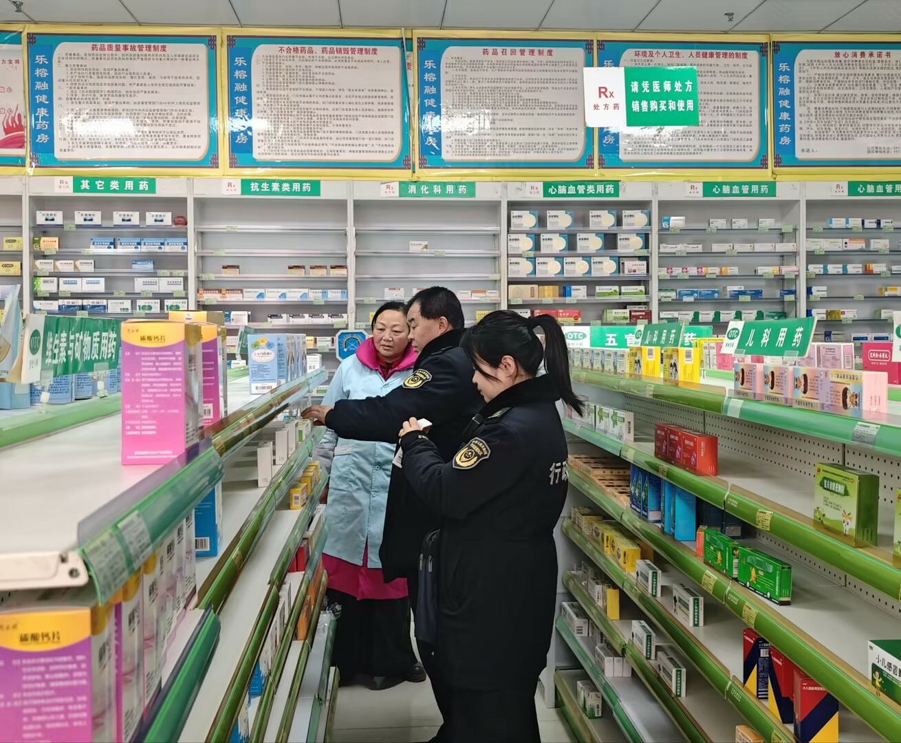 一是严把资质准入关。重点检查经营使用场所醒目位置是否规范悬挂《营业执照》《药品经营许可证》《执业药师注册证》,督促企业完整留存培训记录,规范建立从业人员健康档案。同时,抽查药品购进渠道、随货同行票据及采购记录,严格核查票、账、货相符,严防药品从非法渠道流入。
