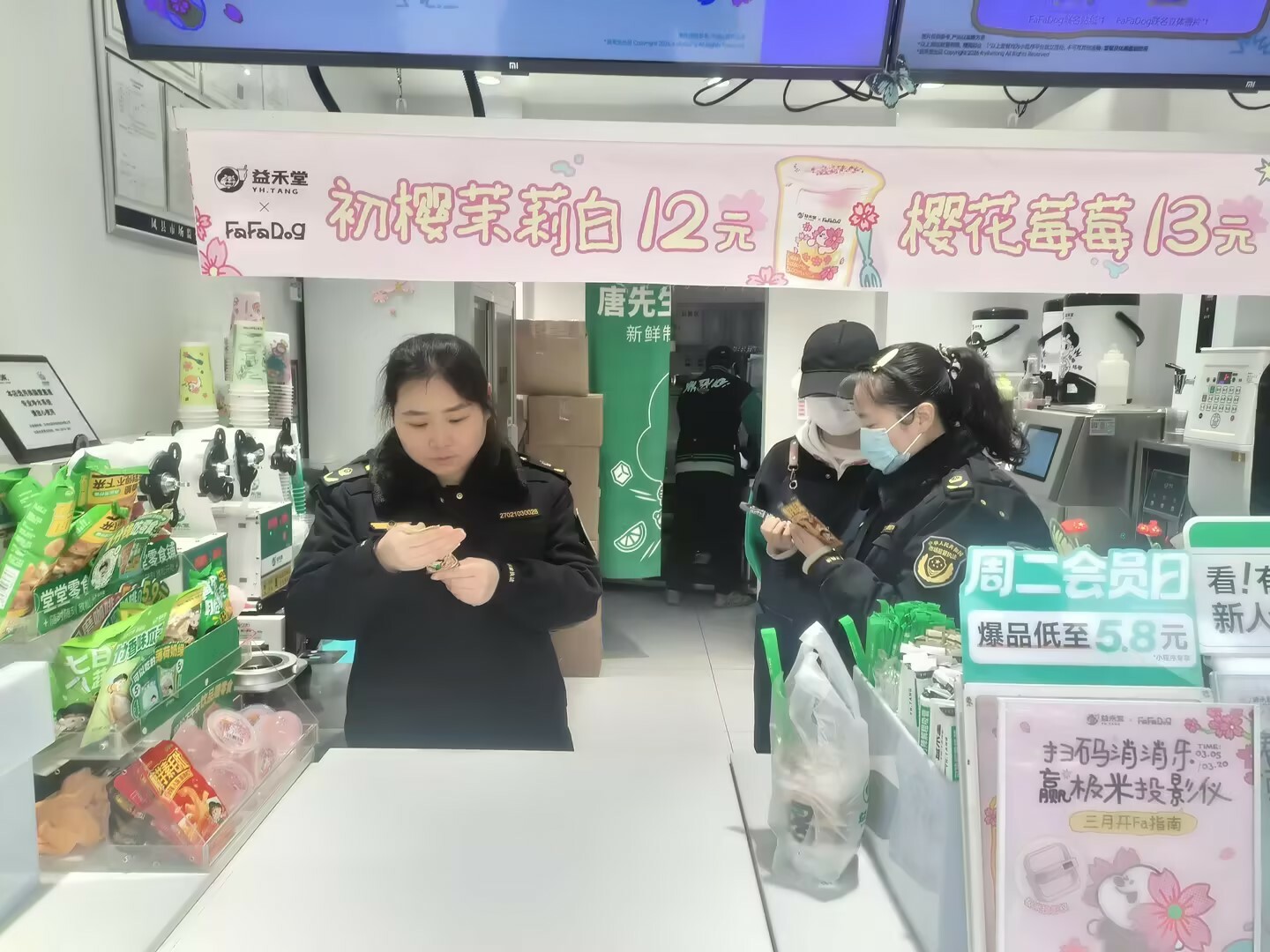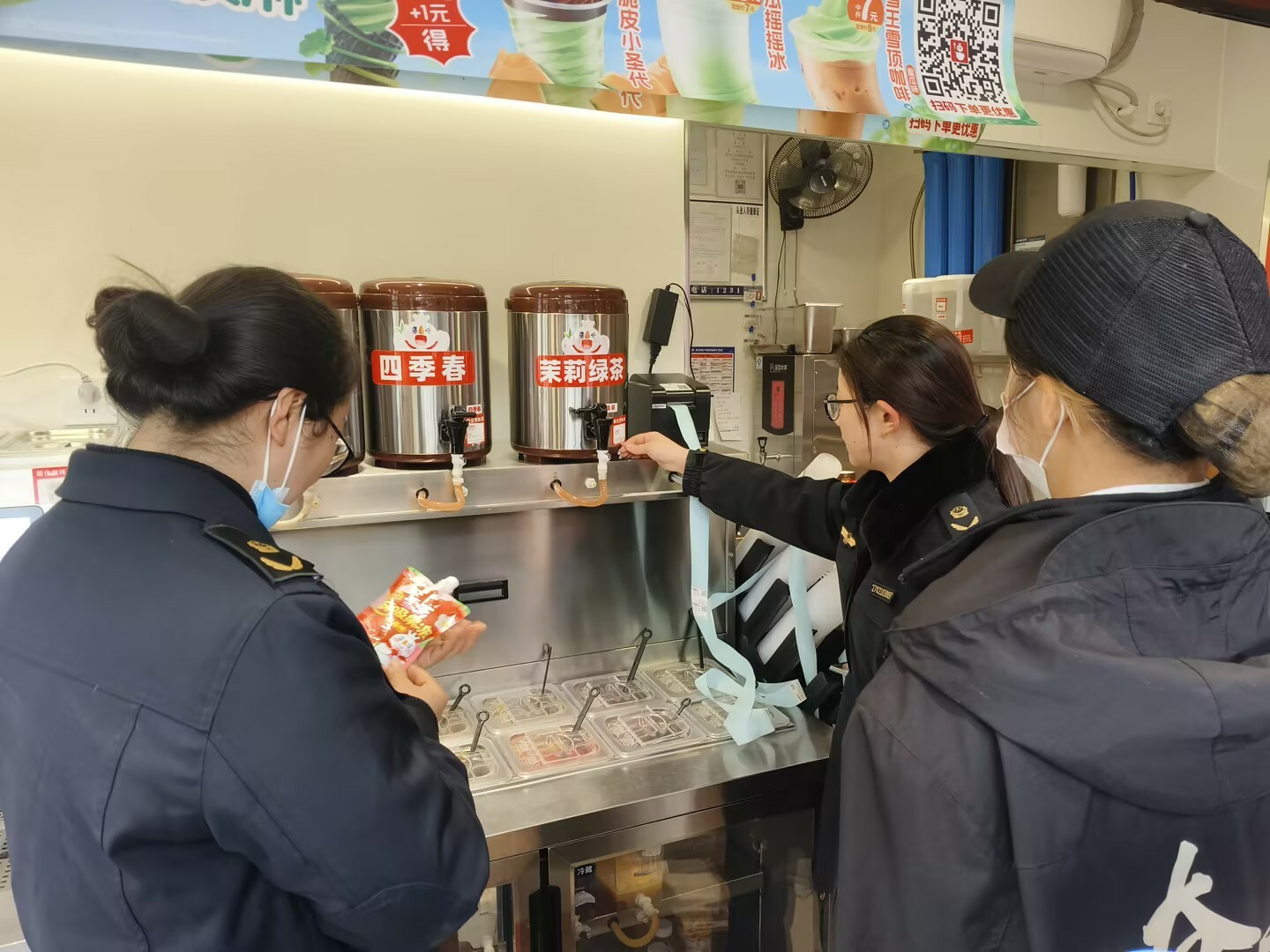 本次检查聚焦群众消费热点,紧盯饮品制作全流程,重点围绕四个方面展开:一是严查进货台账,确保来源可溯。执法人员逐一核查茶叶、奶制品、珍珠、果酱等食品原料的进货记录,核验采购票据与验收记录,督促经营者严格落实进货查验制度,做到原料来源清、去向明。二是细查索证索票,把好资质关口。通过查验供应商营业执照、食品经营许可证及产品合格证明等材料,确保所使用的原料均来自合规渠道,严防不合格产品流入市场。三是排查过期变质食品,消除库存隐患。执法人员对店内仓库及操作台上的原料进行逐一核对,重点查看是否存在过期、变质或“三无”产品,督促经营者及时清理临期物料,杜绝使用过期原料加工制作饮品。四是核查行业标准执行,规范操作流程。对照企业执行标准和产品标签标识,特别是对限期限用食品及半成品的管理,查看是否在保质期内使用,以及开封后原料的储存条件是否符合食品安全要求。严防因储存不当或标准执行不到位引发食品安全风险。
