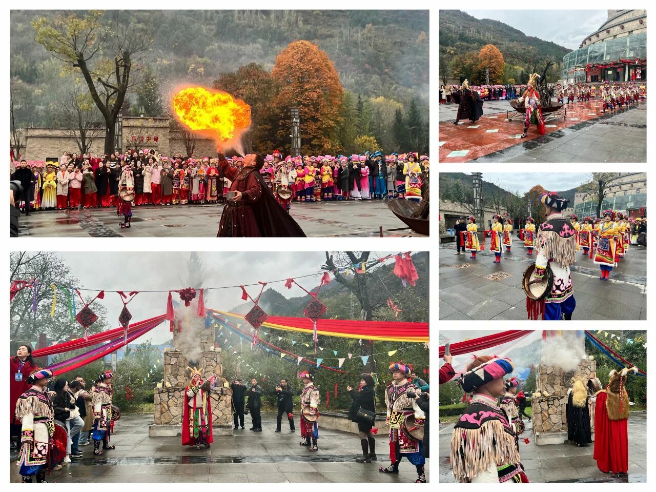 活动现场氛围热烈。庄重的祈福仪式送上风调雨顺、幸福安康的新年祝福;令人叫绝的羌族释比绝技——喷火表演引来现场阵阵惊呼;非遗市集中凤县苞谷酒、凤羌文创产品、“海兽葡萄镜”文创衍生品、花椒美食、养生馒头、康养茶饮等特色商品琳琅满目,让大家沉浸式体验凤县的人文风情与独特魅力。