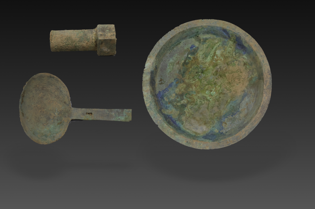 战国墓葬揭露7座。M29为竖穴墓道土洞墓,墓室平面呈“凸”字形,顶部呈拱形,西部有生土台为棺床。随葬品有铜环、玉剑璏、箭镞及具有巴蜀风格的铜鍪。M31为带阶梯的竖穴方坑墓,墓室东西两侧有生土二层台,墓室北部以生土台为棺床,随葬有铜鼎、盘、勺、父,陶器,漆器数件。其中铜鼎为战国晚期楚式风格的铁足铜鼎。