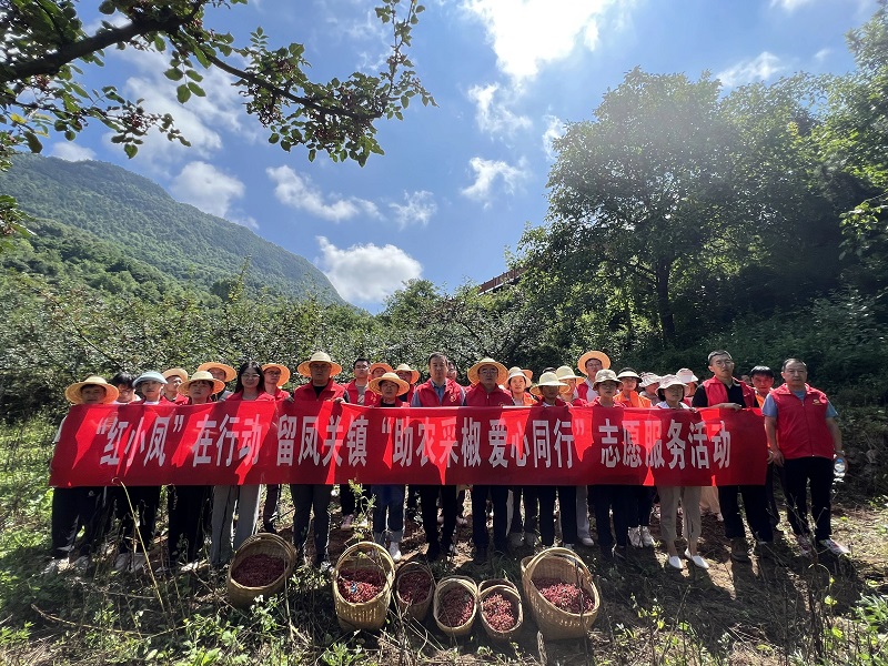 8月2日,正好艳阳高照,留凤关镇新时代文明实践所立即组织开展“红小凤”在行动——“助农采椒 爱心同行”志愿服务活动,组织60余名志愿者一大早走进姚文强家花椒园,在村上采椒能手简单培训后,迅速投入到花椒采摘工作中。志愿者们充分发扬不怕苦、不怕累的精神,顶着炎炎烈日,忍着花椒树刺,一颗一颗、一爪一爪,慢慢被志愿者们收入了提篓里,一上午时间火红的花椒树上就只剩下绿叶。在采摘过程中,志愿者还与椒农进行深入交流,详细了解花椒种植中遇到的困难与需求,以“红小凤”的志愿力量彰显新时代文明实践的“服务底色”,破解人民群众的“采椒之急”。