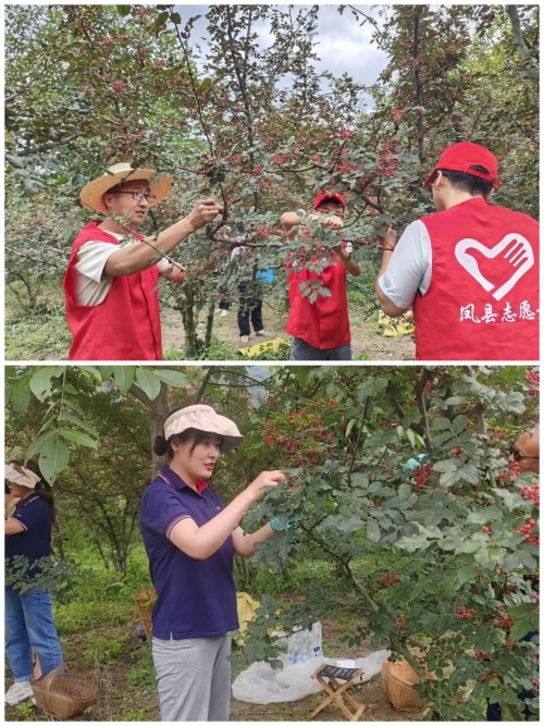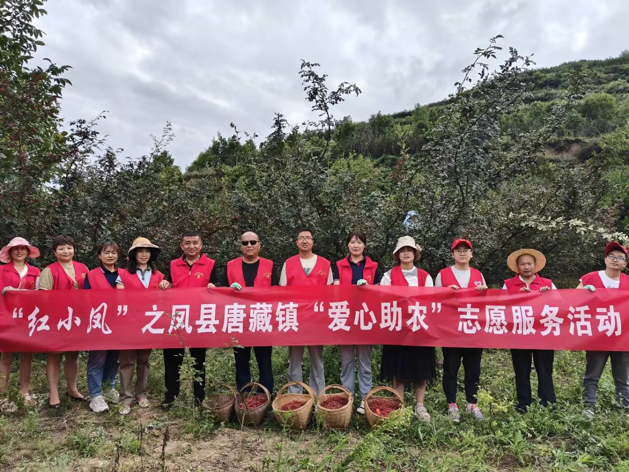 “红小凤”之唐藏镇“爱心助农”志愿服务队得知此事后,及时联系辛家庄村包联企业联通公司,于8月8日联合开展爱心助农活动,组织十余名志愿者帮助辛月庆抢收花椒,解决实际问题。