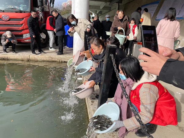 11月22日,双石铺镇杨家坪社区发挥“党建引领”作用,助力县农业农村局开展“增殖放流”双报到志愿服务活动。