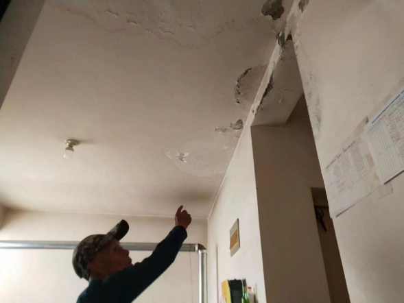 接到网格员的反映后,分管领导和业务干部第一时间赶到现场,查看漏水情况,通过和业主何先生的协调沟通,决定邀请专业做防水的师傅对屋顶漏水问题进行处理,避免此类问题再次发生。
