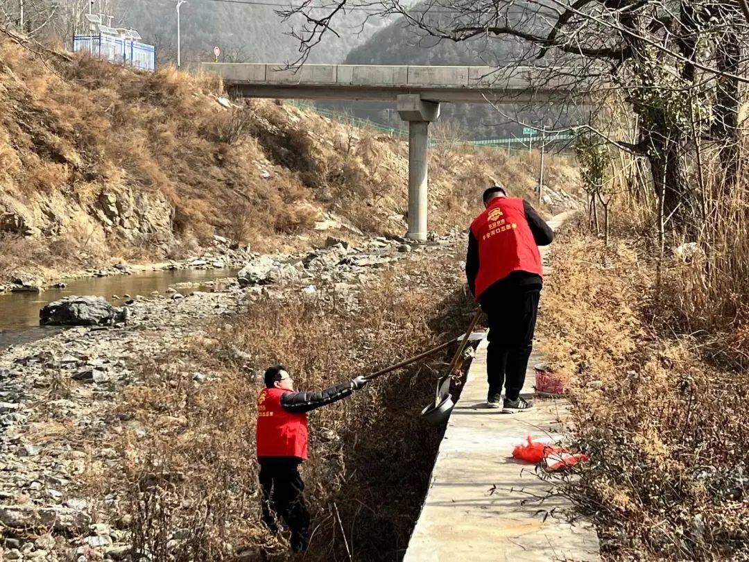 植树活动现场,志愿者们分工协作,挥锹挖坑,栽植树苗,扶正压实,提水浇灌……呈现一片热火朝天、团结协作的劳动景象。经过2个多小时的奋战,共种植绿化苗木100余棵。一排排新栽的树苗在微风中散发着勃勃生机,增添了一抹绿意,直接用植绿添绿之妙笔,点出了生态环境的美好。植树活动结束后,全体参与人员再接再厉,不畏辛苦,继续对核桃坝村重点区域和重点沟渠人居环境卫生进行了全面整治。