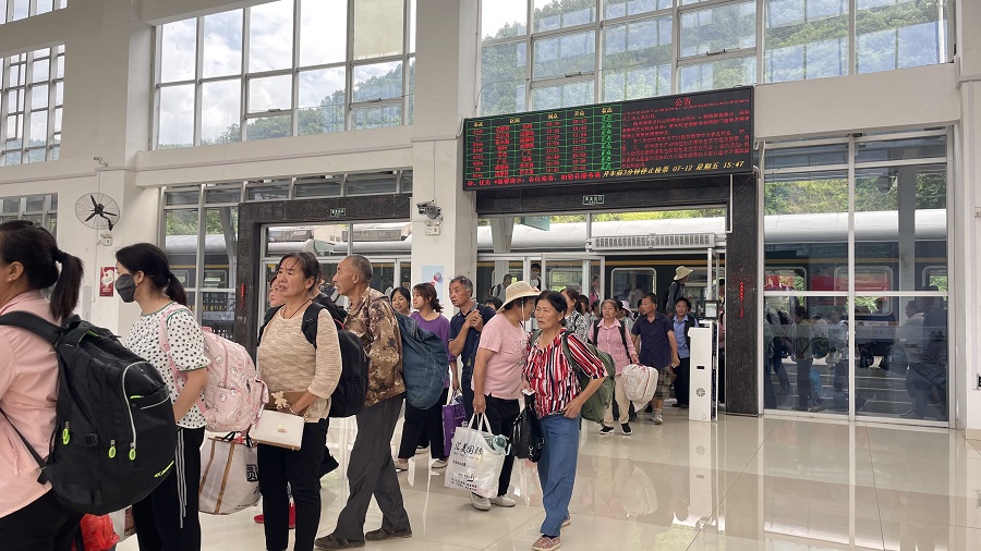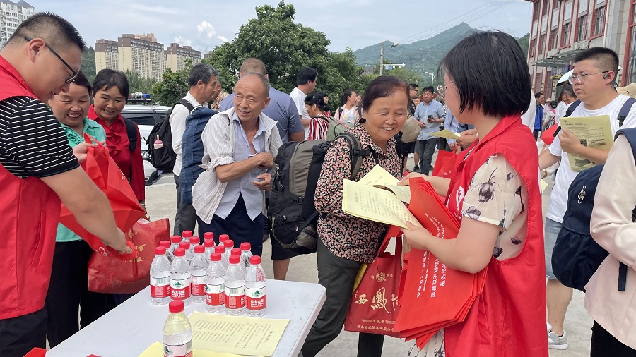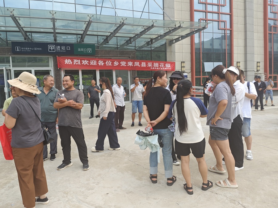 2024年7月12日,凤县火车站广场上人头攒动、气氛热烈,来自汉中宁强、略阳等地的360余名花椒采椒工乘坐火车来到双石铺镇,与双石铺镇椒农们共赴丰收之约,开启他们的采椒之旅。