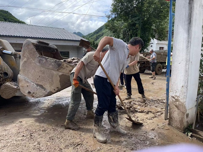 广大党员干部、群众发扬“不怕苦、不怕累”精神,亮身份、树旗帜,充分发挥模范带头作用,在抢险一线带领群众团结奋战,为恢复群众正常生产生活秩序按下“加速键”。