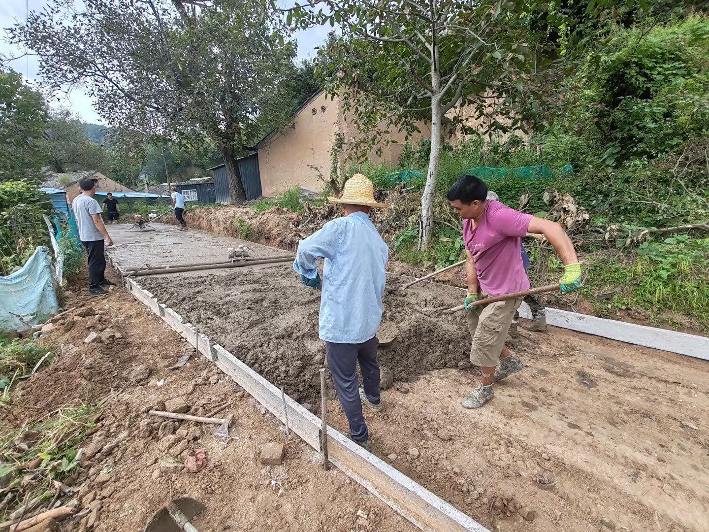 8月22日,凤州镇龙口村四组村庄道路正在紧张地施工中,这条每逢下雨天就会“和稀泥”的老路,在“一事一议”财政奖补政策下,即将以“水泥路”的新面貌迎接村民的验收。