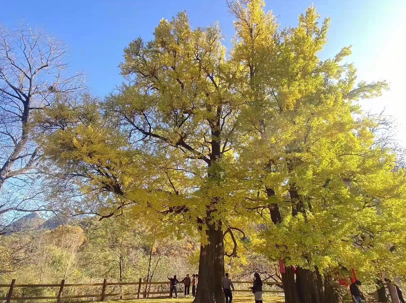金秋十月,是苇子坪千年银杏夫妻树的主场。村民们会在这时背上背篓或蛇皮袋,将秋风的馈赠——银杏果一一拾起。这些圆圆润润的银杏果,不仅象征着秋天的丰收,更是当地人餐桌上的美味佳肴。
