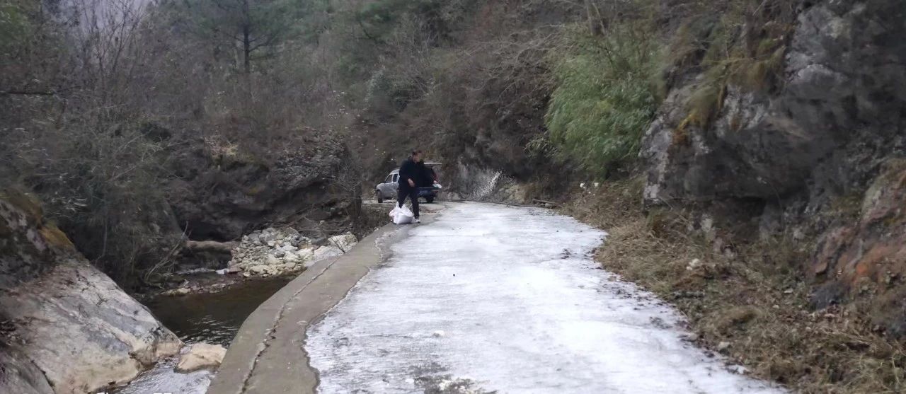 村干部发现问题后,第一时间带上融雪剂赶往结冰路段,沿着道路边缘撒融雪剂,很快结冰道路就恢复了通畅。紧接着,村干部不顾严寒,逐段查找水管冻裂位置,很快便在山脚处发现冻裂处,经过一上午的紧张施工,破损的水管很快被修复,村民的饮水又恢复了正常。虽然大家耳朵、鼻子冻得通红,双手僵硬地拿不稳工具,但是看到帮助村民解决了饮水问题,心里都乐滋滋的。