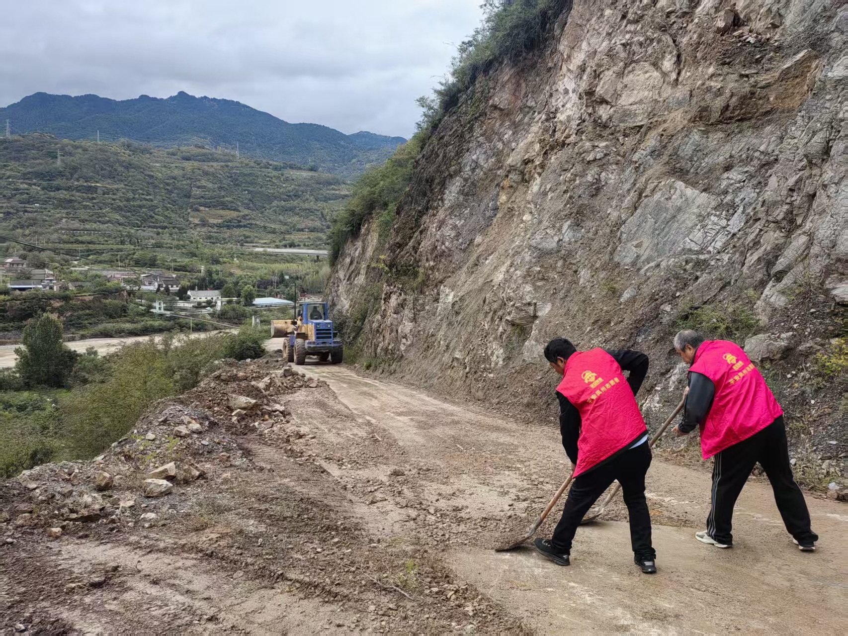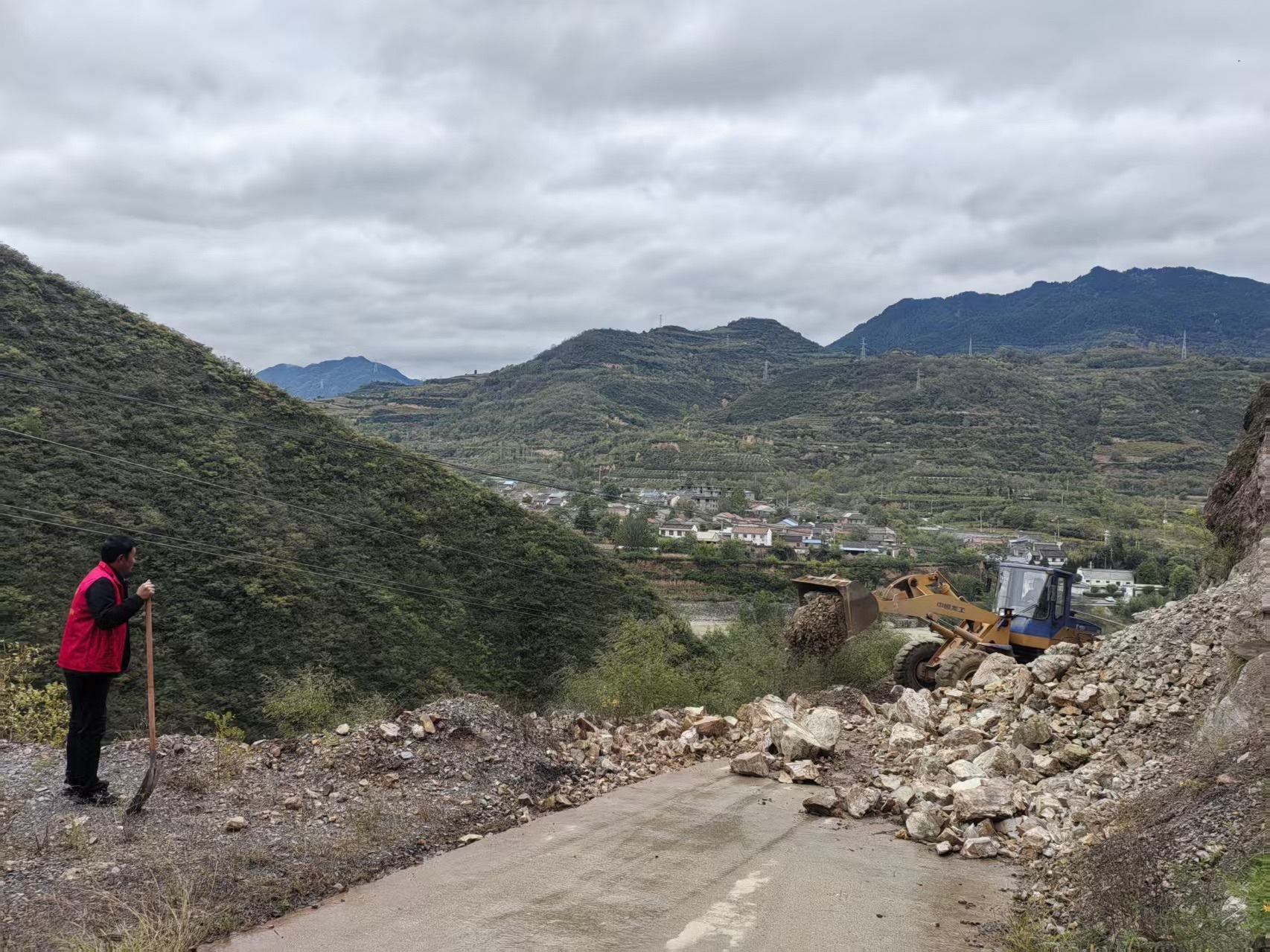 行动中,党员干部充分发挥先锋模范作用,带头扛起铁锹对垮塌的泥土、石头进行全面清理。大家分工明确、协作高效,有的负责指挥机械,有的负责清扫零散杂物,有的则在现场设置安全警示标识,确保清理工作安全有序推进。同时,村干部通过村民微信群、电话提醒方式向村民进行安全提示,提醒大家雨天出行注意观察路况,发现道路隐患及时向村委会反馈,共同守护村内道路安全。