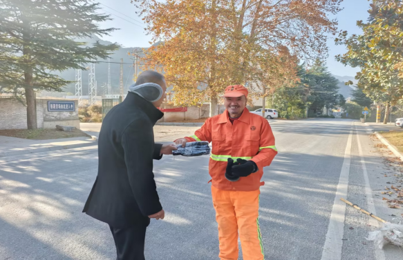 活动当天,为不影响环卫工人们开展作业,龙口村党支部负责人带领村常设干部逐人走访发放手套,详细询问他们的日常作业时间、冬季保暖情况以及工作中遇到的实际困难。今年58岁的环卫工人王大叔戴上手套后,不停地摩挲着,感慨道:“冬天扫街最怕手冻僵,有了这副手套,干活也更利索了,村里一直惦记着我们,心里特别感动。”