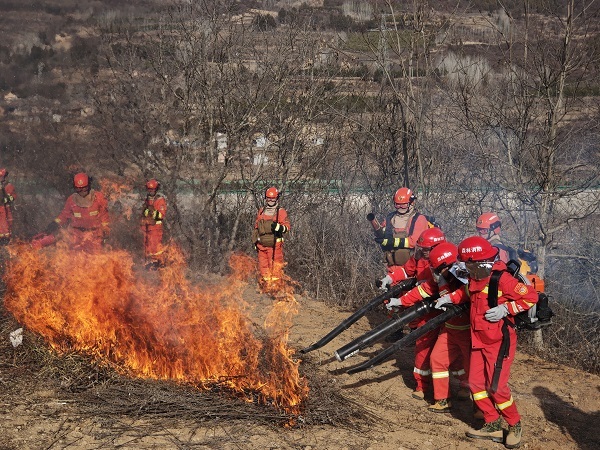 在实战演练环节,通过模拟真实森林火灾场景,参演队员有序开展安全警戒、火情监测、隔离带开设、火线扑救、余火清理等环节作业,进一步提升了镇村应急队伍应对复杂森林火灾的实战水平。