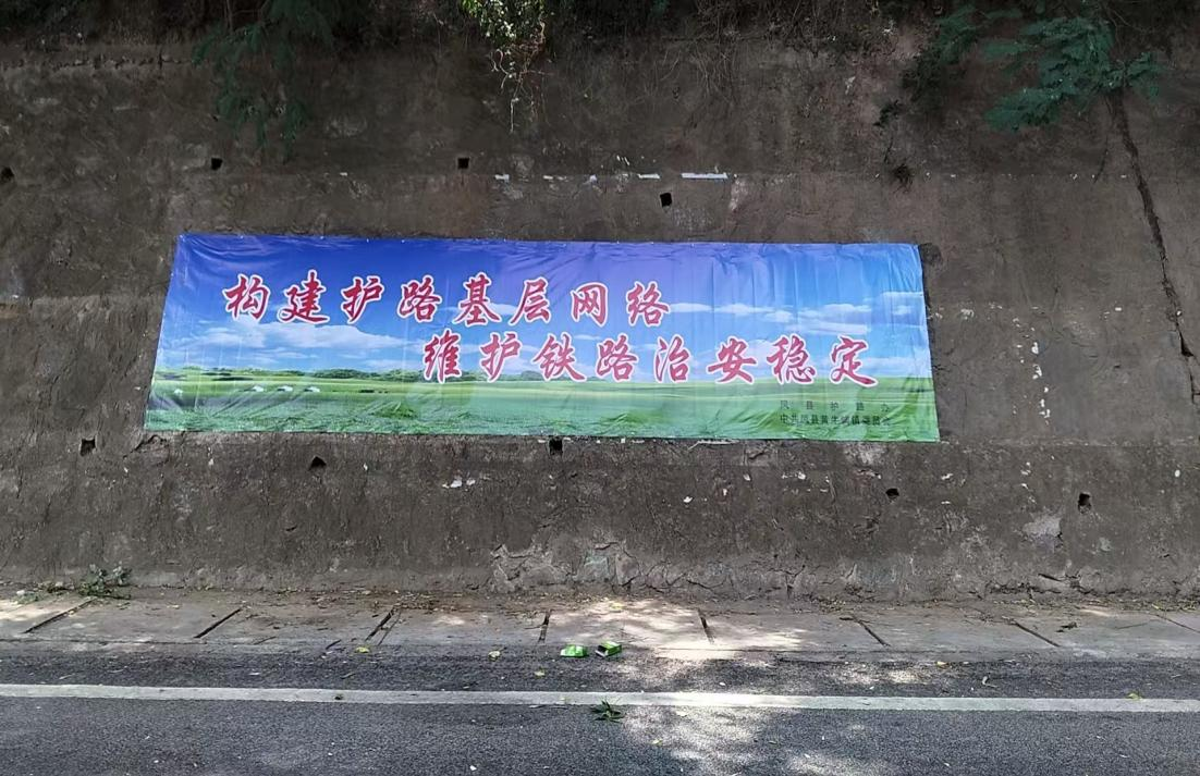 全面宣传,营造共建共治氛围。线上在各村网格群转发《铁路安全管理条例》《爱路护路倡议书》《致铁路沿线群众一封信》等宣传资料。线下在东河桥219省道护坡、黄牛铺村铁路涵洞前护坡张贴“平安铁路人人建,幸福生活代代传”“人人参与护路联防,处处共享铁路平安”等海报,让群众深刻感受创建平安铁路的重要性。