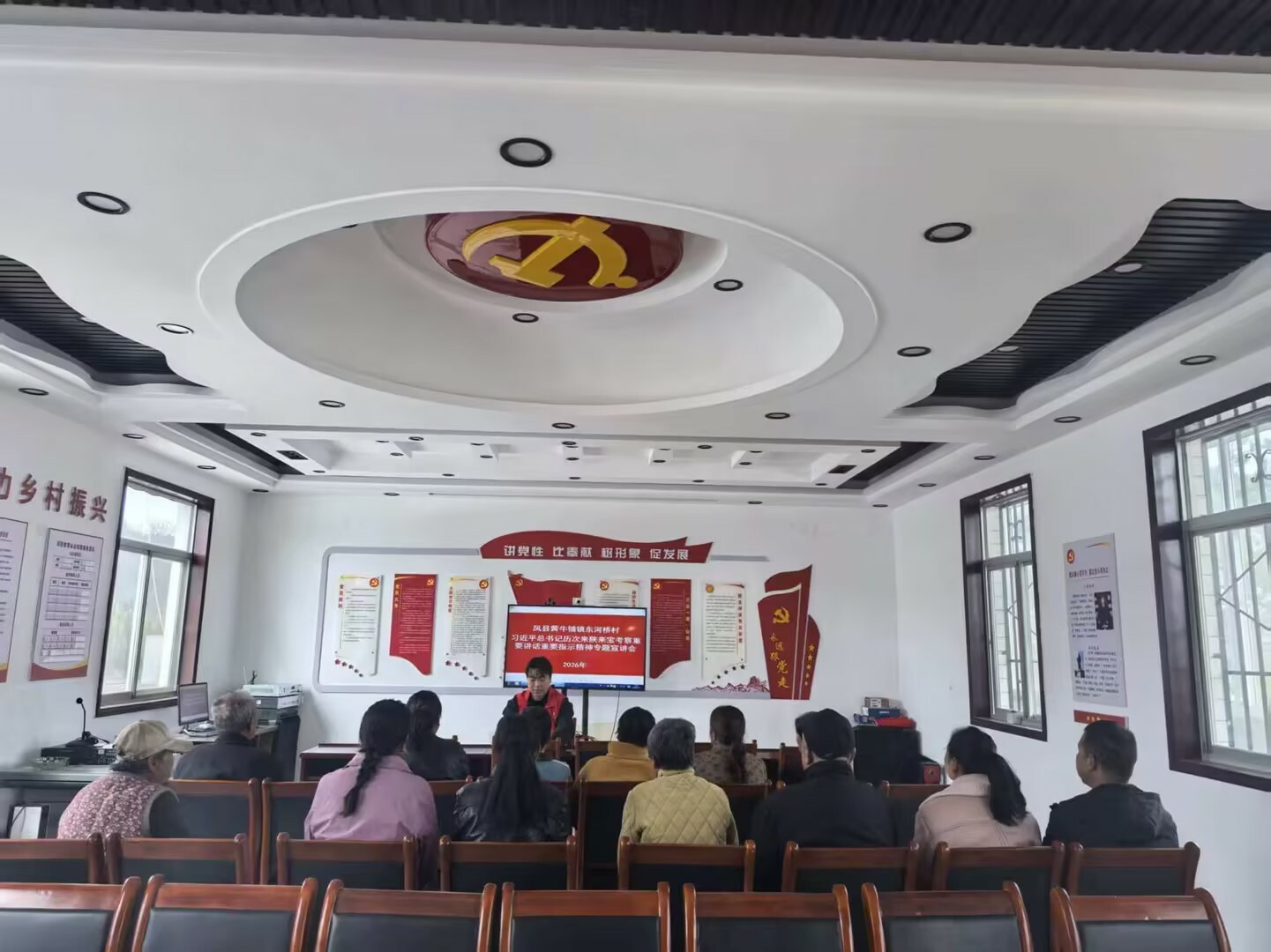随后,开展专题宣讲,深入学习习近平总书记历次来陕来宝考察重要讲话重要指示精神。从2015年梁家河考察强调“老区发展和老区人民生活改善时刻放在心上”,到2020年柞水考察提出“脱贫摘帽不是终点,而是新生活、新奋斗的起点”;从2021年榆林考察对生态保护、高质量发展的嘱托,到2024年宝鸡考察强调“大保护是大发展的前提”,宣讲员结合陕西、宝鸡及本村实际,回顾总书记的殷切关怀与重要指示,引导村民深刻领会“绿水青山就是金山银山”的发展理念,把握“围绕产业链部署创新链、围绕创新链布局产业链”的发展要求,牢记“做好乡村振兴这篇大文章,推动乡村产业、人才、文化、生态、组织等全面振兴”的重要嘱托。