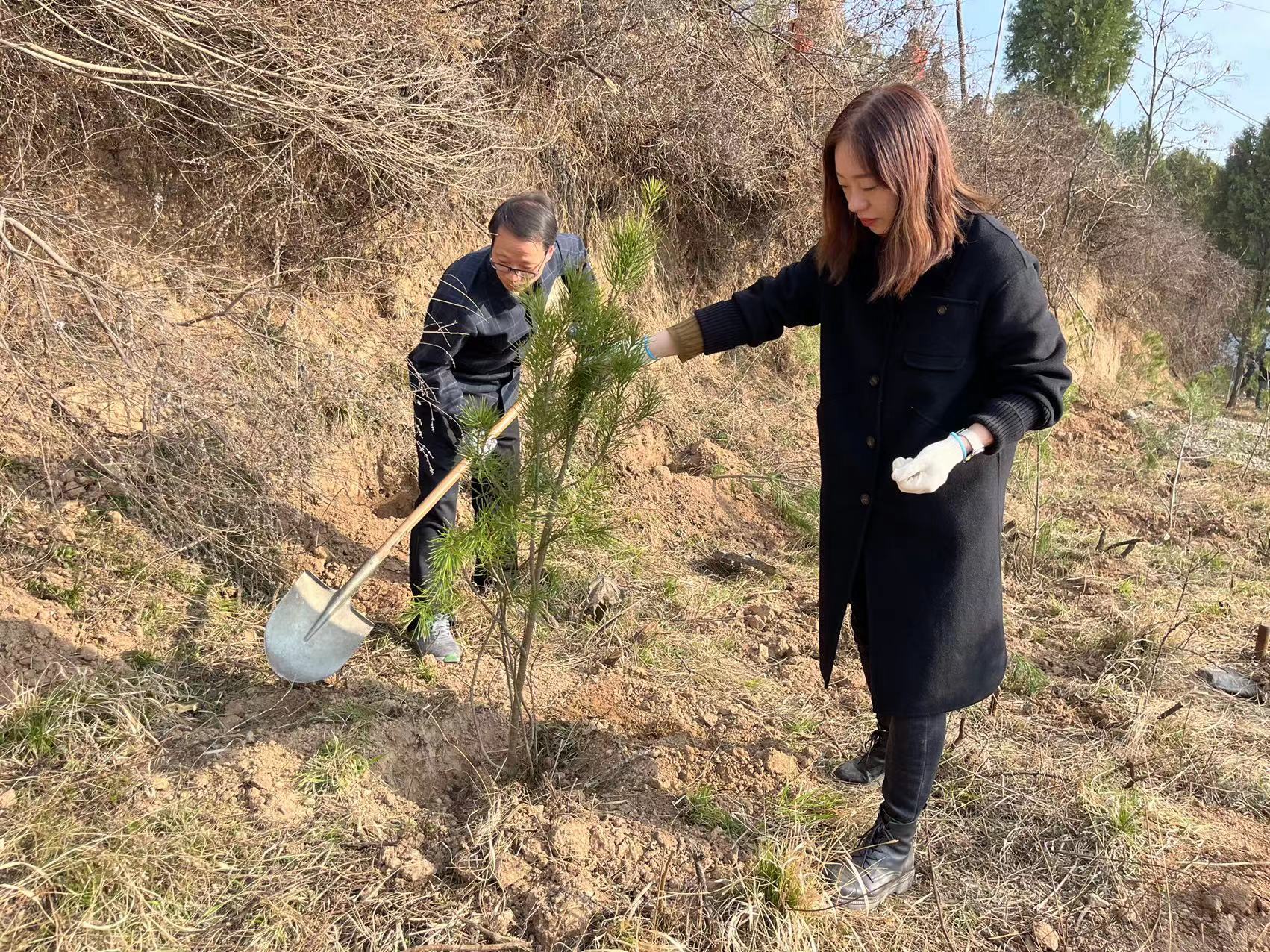 迎着朝阳,同志们热情高涨,积极参加到植树活动中,一到植树现场,纷纷挥锹铲土、放苗回填,场面异常火热。经过一个多小时的辛勤劳动,树苗便"亭亭玉立"在沃土上。虽然大家脚底全是泥土,但眼前这一片新生的春意让大家满心欢喜。