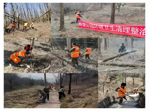 本次活动主要是在前期岭南公园维护管理工作基础之上对公园内雪压风折木、枯死木及影响游园体验、美感的枯草杂灌进行清理整治;对园内游道景观设施进行检修维护;对公园内的垃圾、卫生环境进行全面清理提升。