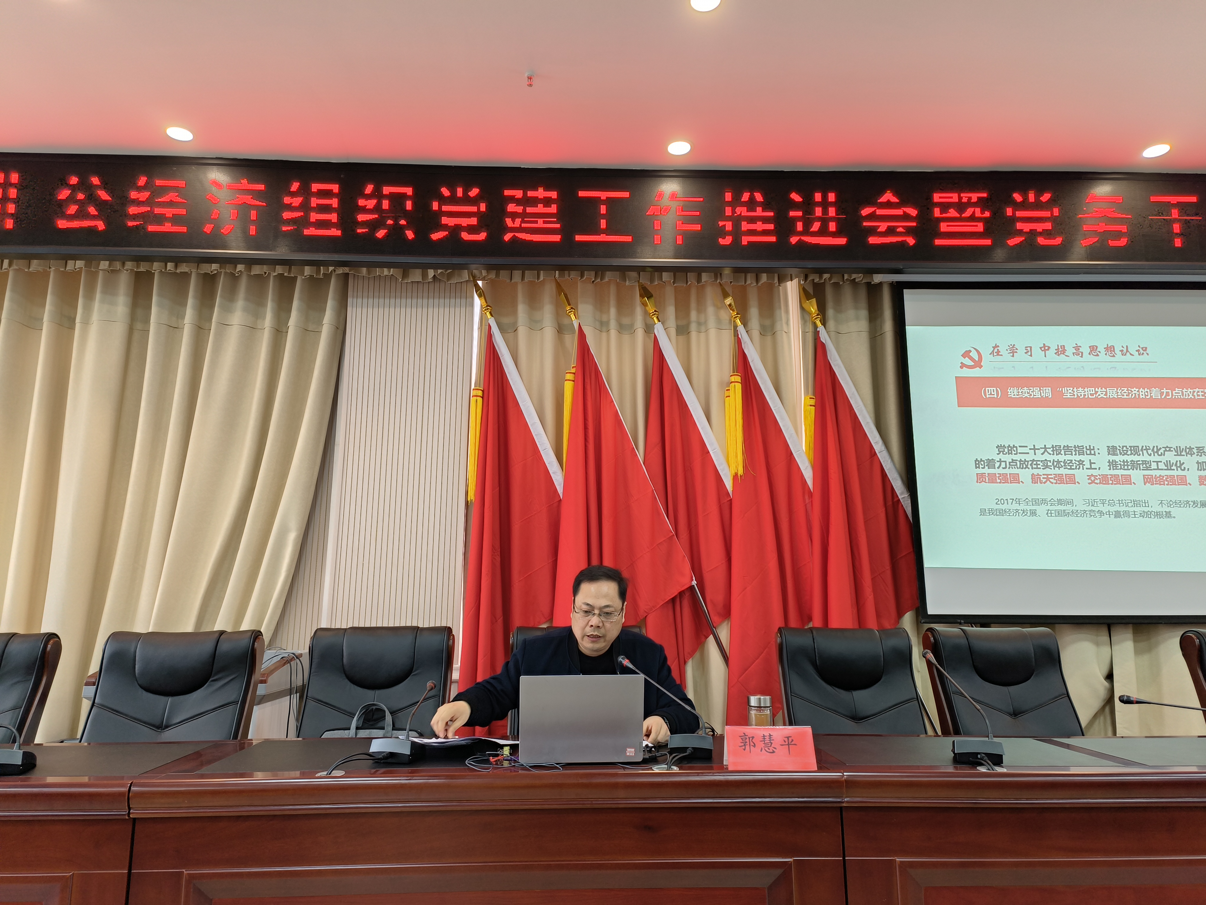 市非公党办主任郭慧平围绕“认真学习宣传贯彻党的二十大精神,从严抓规范,从实抓提升,努力推动非公党建工作提质增效”的主题进行了讲解,强调要在学习中提高思想认识,在鼓足干劲中抓好落实。