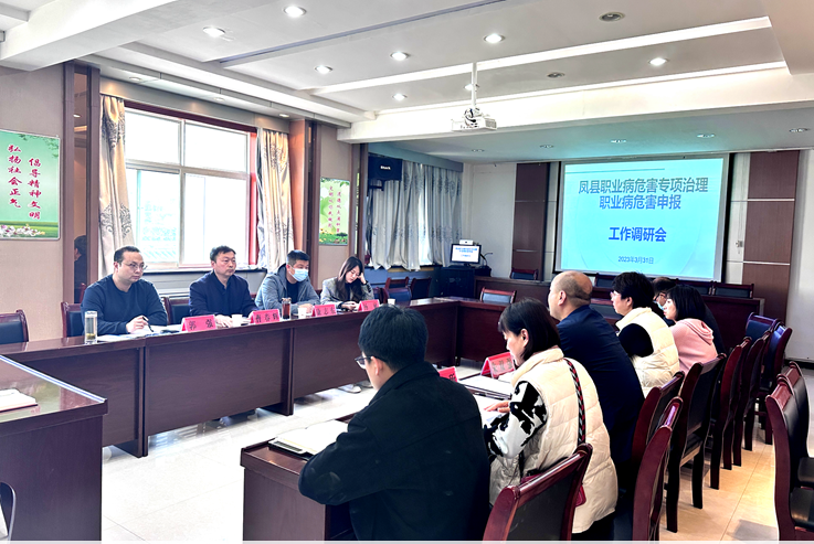 在调研座谈会上,凤县卫健局分管副局长就凤县职业病危害专项治理和职业病危害申报工作进行了汇报,调研组对凤县的职业病危害专项治理和职业病危害申报工作给予了充分肯定,认为凤县职业病危害专项治理和职业病危害申报工作底子清楚,工作扎实,思路清晰,措施到位,下一步要做好企业服务,厘清责任,认真扎实开展整改工作。