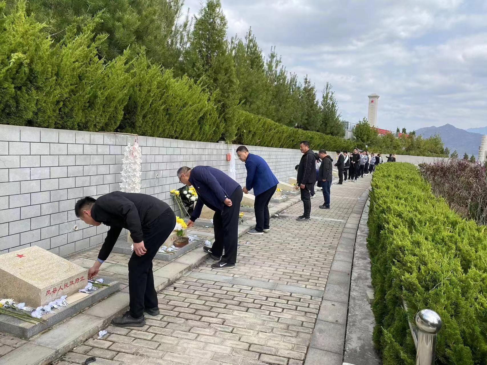 青山埋忠骨,丰碑祭英豪。全体党员干部、团员青年走进凤县革命烈士陵园,在镌刻着“革命烈士永垂不朽”八个鎏金大字的巍峨的烈士纪念碑前,神情肃穆、整齐伫立,怀着崇敬的心情向在这里长眠的革命烈士敬献花束、默哀致敬,表达对先烈们的深深崇敬和无限缅怀。