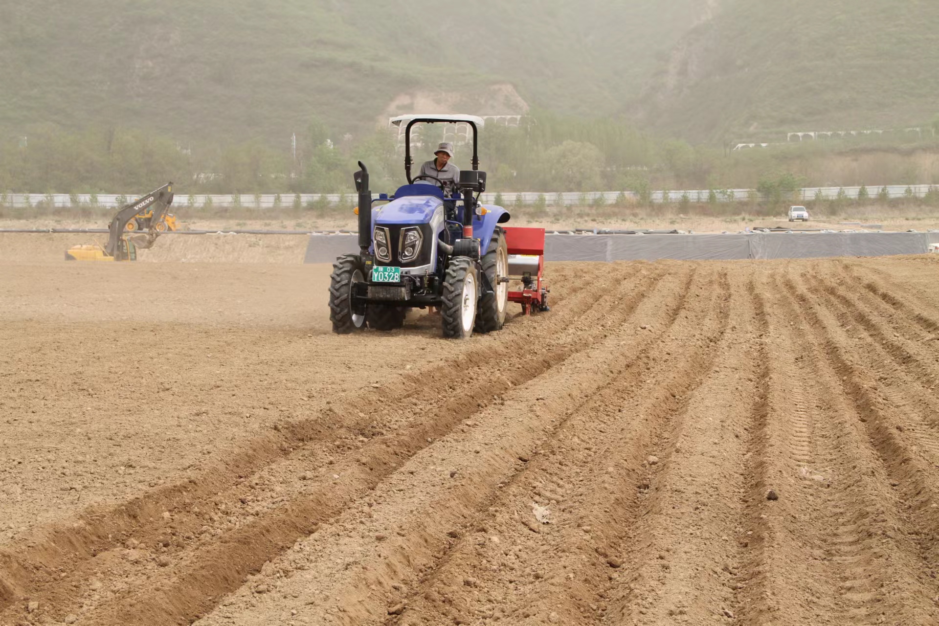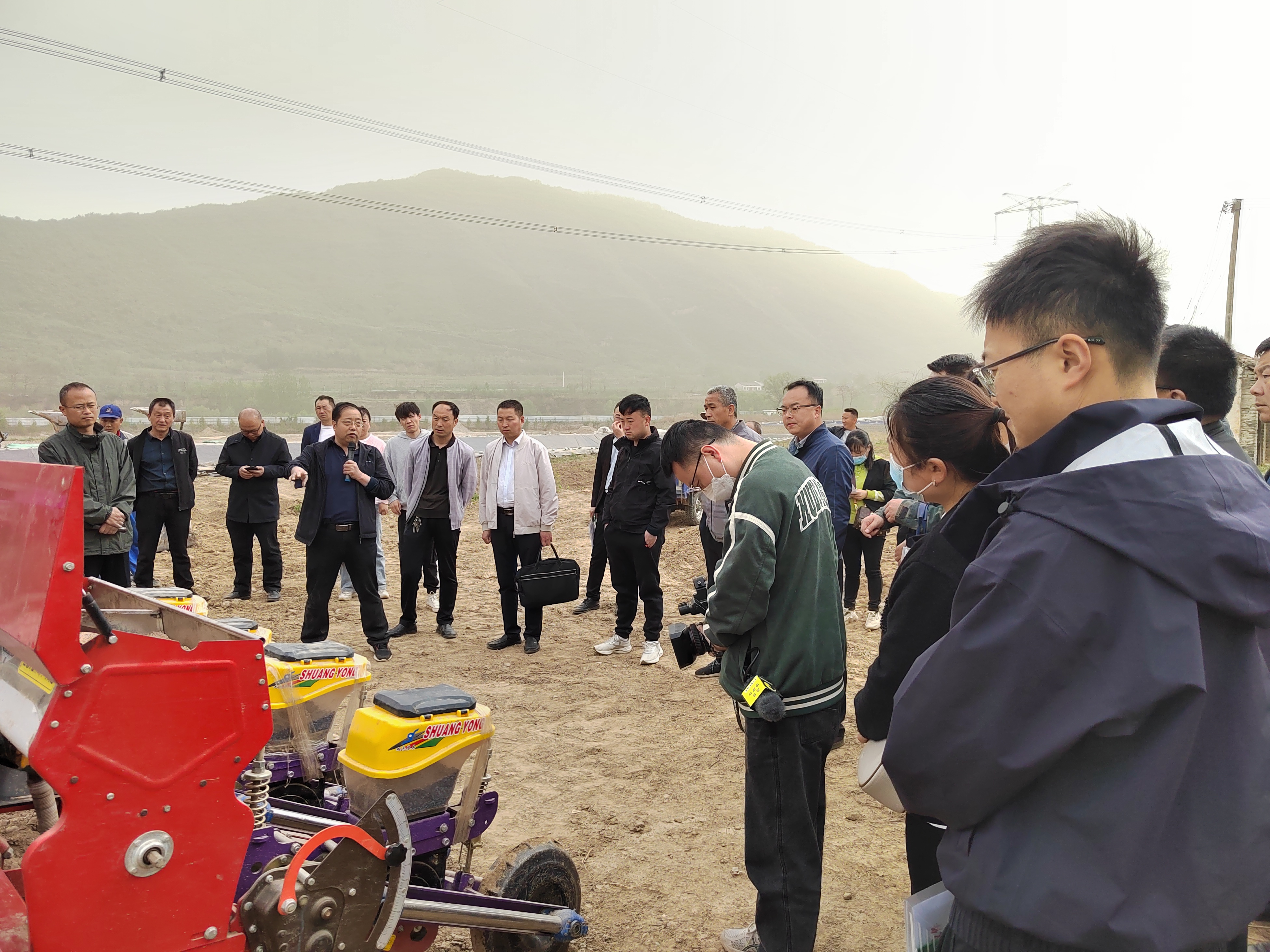 会上,与会人员现场观摩春玉米机械化播种推广技术。