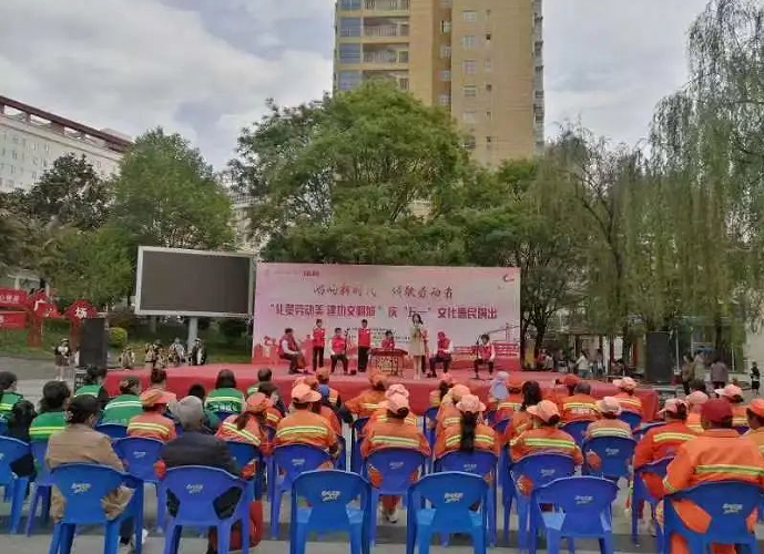 演出以器乐合奏《花儿与少年》拉开帷幕,女声独唱《微山湖》、秦腔表演《柴郡主在深宫笑容满面》、少儿舞蹈《街舞少年》、旗袍秀《万疆》把整台演出推向了一个个高潮。本场演出还特意邀请百余名清洁工人前来观看,广场上,人头攒动,精彩纷呈的节目和演员们精湛的演出博得了现场观众的阵阵掌声。