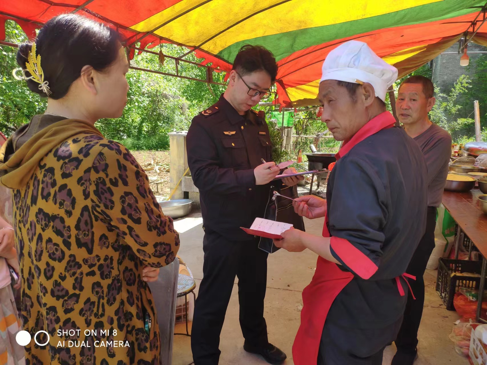 留凤关市场监督管理所工作人员通过各村食品安全协管员及时掌握农村宴席拟办情况,对农村宴席进行提前干预,对食材来源、加工过程、用餐环节进行现场指导,并及时纠正过量设计宴席菜单、未提供打包服务等行为。同时,向宴席提供者以及农村厨师发起“制止餐饮浪费”倡议,按需合理采购食材,杜绝“讲面子”“摆排场”“大操大办”等铺张浪费行为,号召厉行节约、反对浪费,进一步将“节约粮食、反对浪费”理念贯穿群宴全链条、全过程,加强对群宴承办方的督促指导,要求其主动开展制止餐饮浪费宣传和劝导工作,倡导就餐群众和举办方将宴席剩余食物打包,让合理消费作为一种共识入脑入心,细化节约举措,践行光盘行动,拒绝餐饮浪费。
