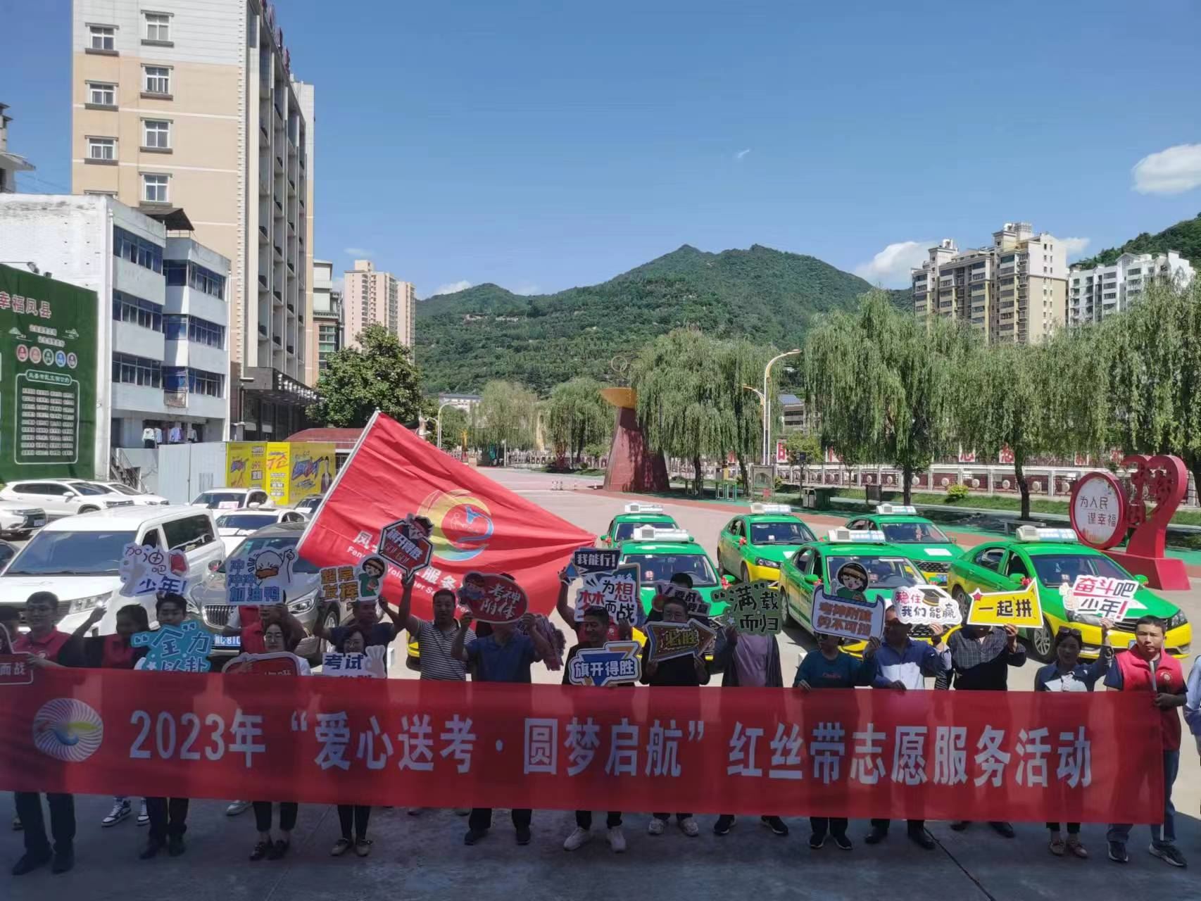 6月5日,2023年“爱心送考·圆梦启航”红丝带志愿服务活动在县体育馆正式启动,近40辆出租车和社会车辆将在6月6日下午至8日为高考学生提供往返考场的免费乘坐服务。