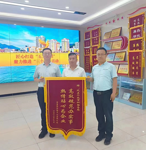 “你们的服务真是太高效了,工作人员服务态度好,又非常专业!”7月25日上午,旺客隆购物中心有限公司为凤县行政审批局送来了一面写有“高效规范办实事,热情贴心为企业”的锦旗,感谢并赞扬了工作人员优质的服务态度和高效的工作作风。