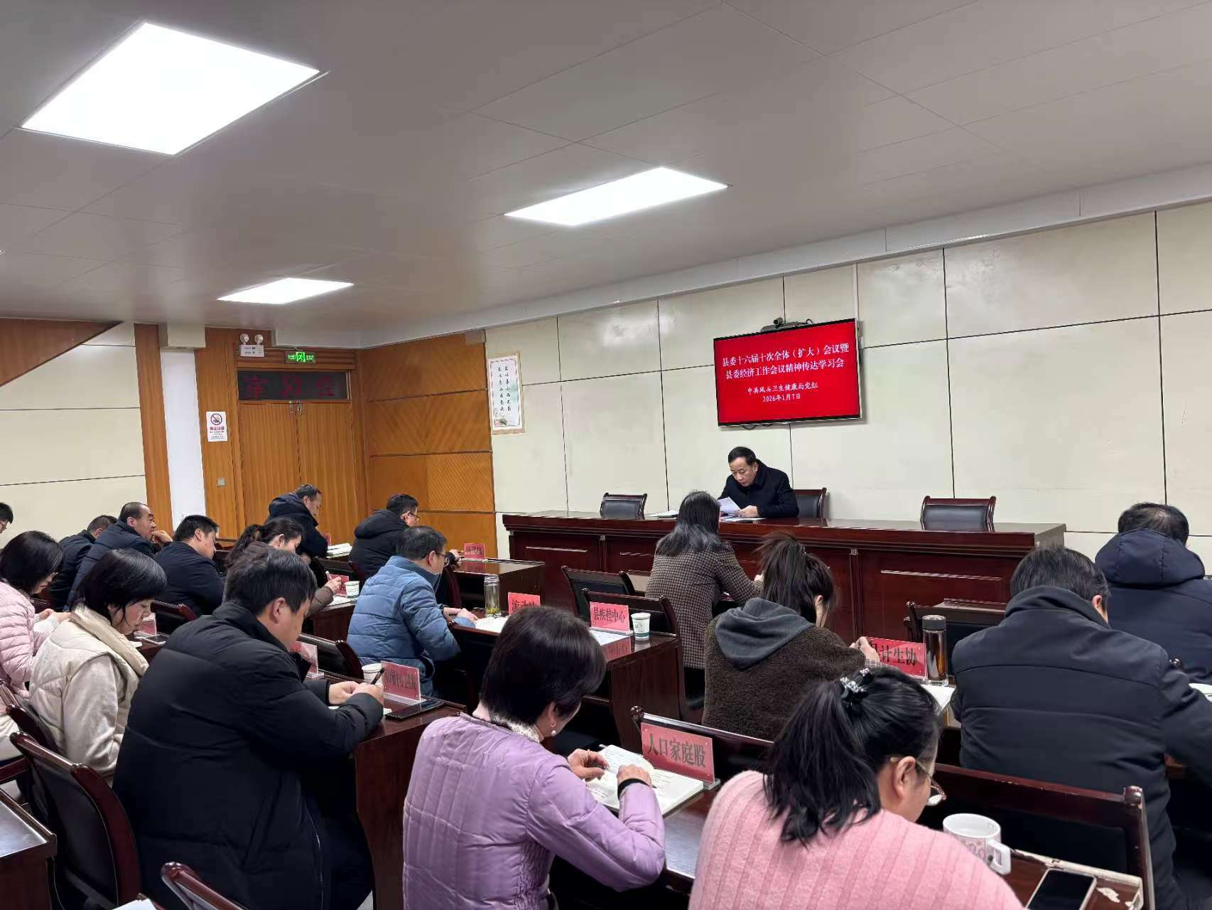 会上,县卫健局党组主要负责人详细传达了县委全会暨县委经济工作会议精神,重点传达学习了县委书记张平,县委副书记、县政府县长冯宝平同志讲话精神。结合工作实际,提出贯彻落实意见,进一步明确2026年卫生健康思路目标及重点任务,动员全系统干部职工进一步凝聚共识,切实将思想和行动统一到县委决策部署上来,推动新一年卫生健康事业良好开局。