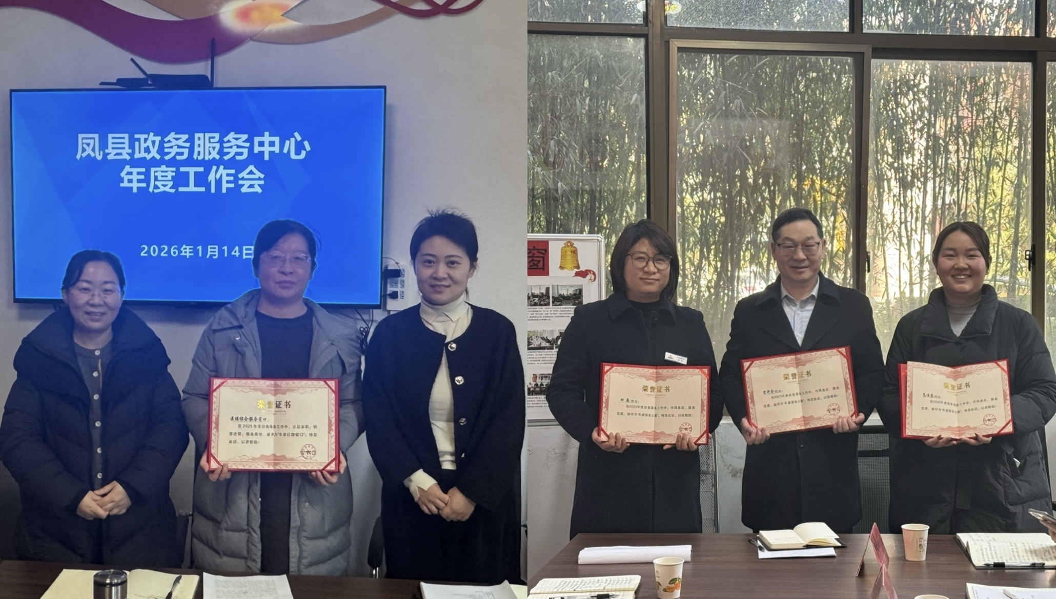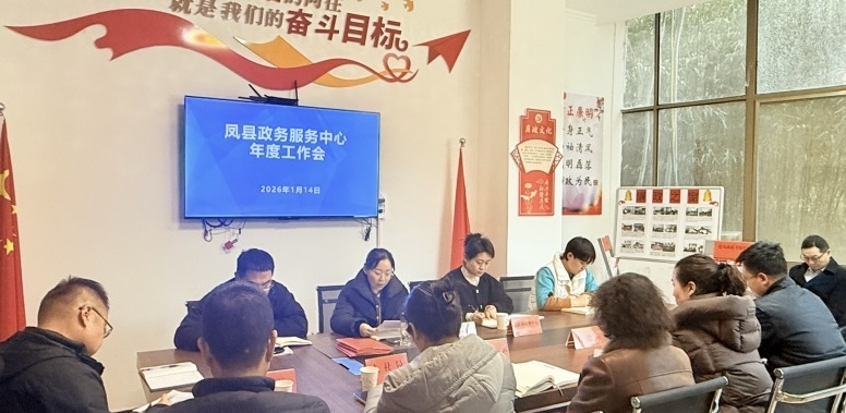 1月14日,凤县政务服务中心召开2025年度窗口工作总结暨表彰大会。县政府办公室分管领导出席会议并讲话,中心领导班子成员、全体干部职工,以及各进驻部门分管领导、窗口工作人员代表共计40余人参加会议。