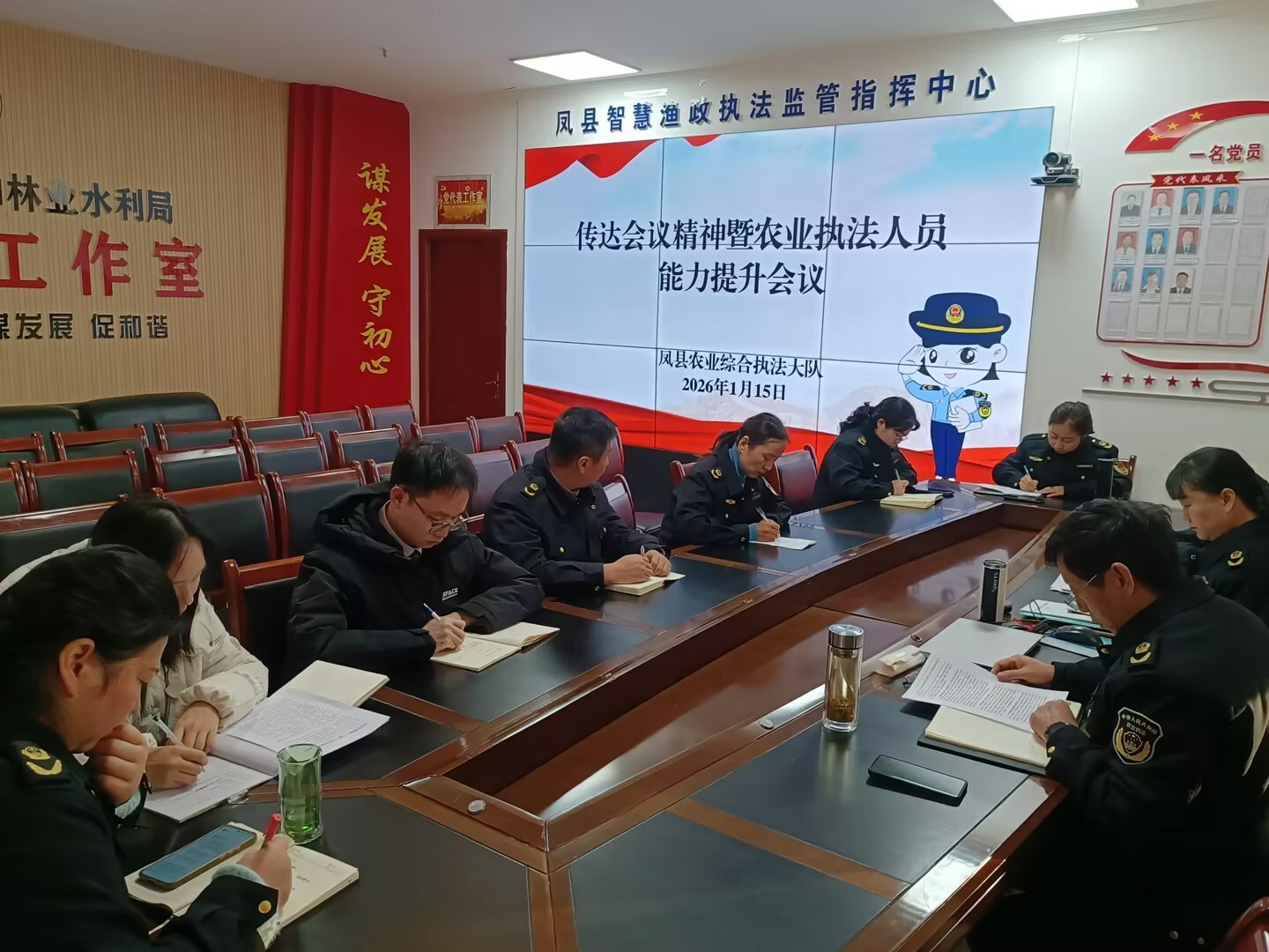 为全面贯彻县委十六届十次全体(扩大)会议暨县委经济工作会议及局党组会议精神,将上级部署与农业执法实践深度融合,着力提升执法队伍专业化水平,近日,县农业综合执法大队召开专题会议,集中传达学习系列会议核心要义,同步开展农业执法人员能力提升培训,全体执法人员参加会议。