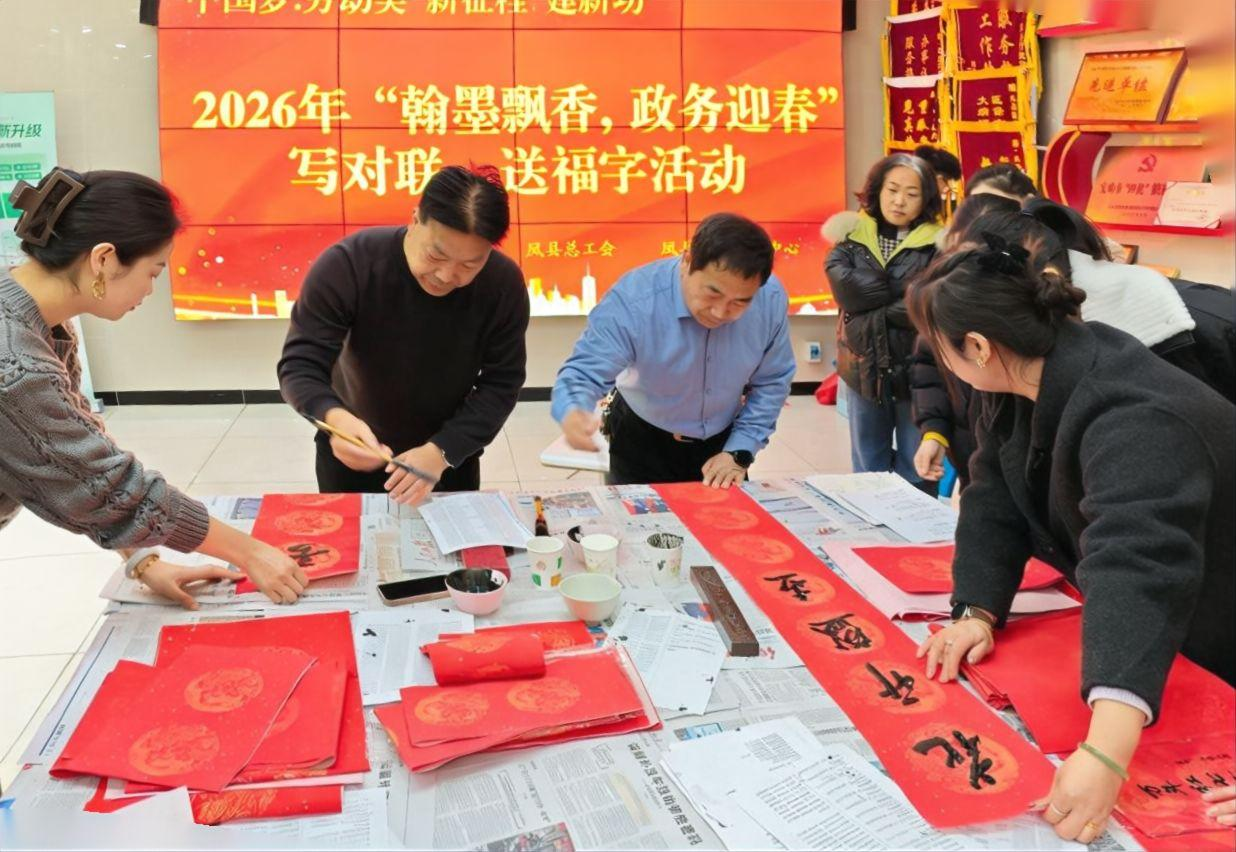 墨香迎新春,温情暖万家。2026年新春佳节将至,为弘扬中华优秀传统文化,营造欢乐祥和的节日氛围,进一步拉近政务服务与企业、群众的距离,2月4日至5日,凤县政务服务中心联合凤县总工会共同开展“翰墨飘香,政务迎春”主题活动,以笔墨传递美好祝愿,以服务凝聚民心共识,让政务大厅在浓浓年味中流淌着暖心的政务温情。