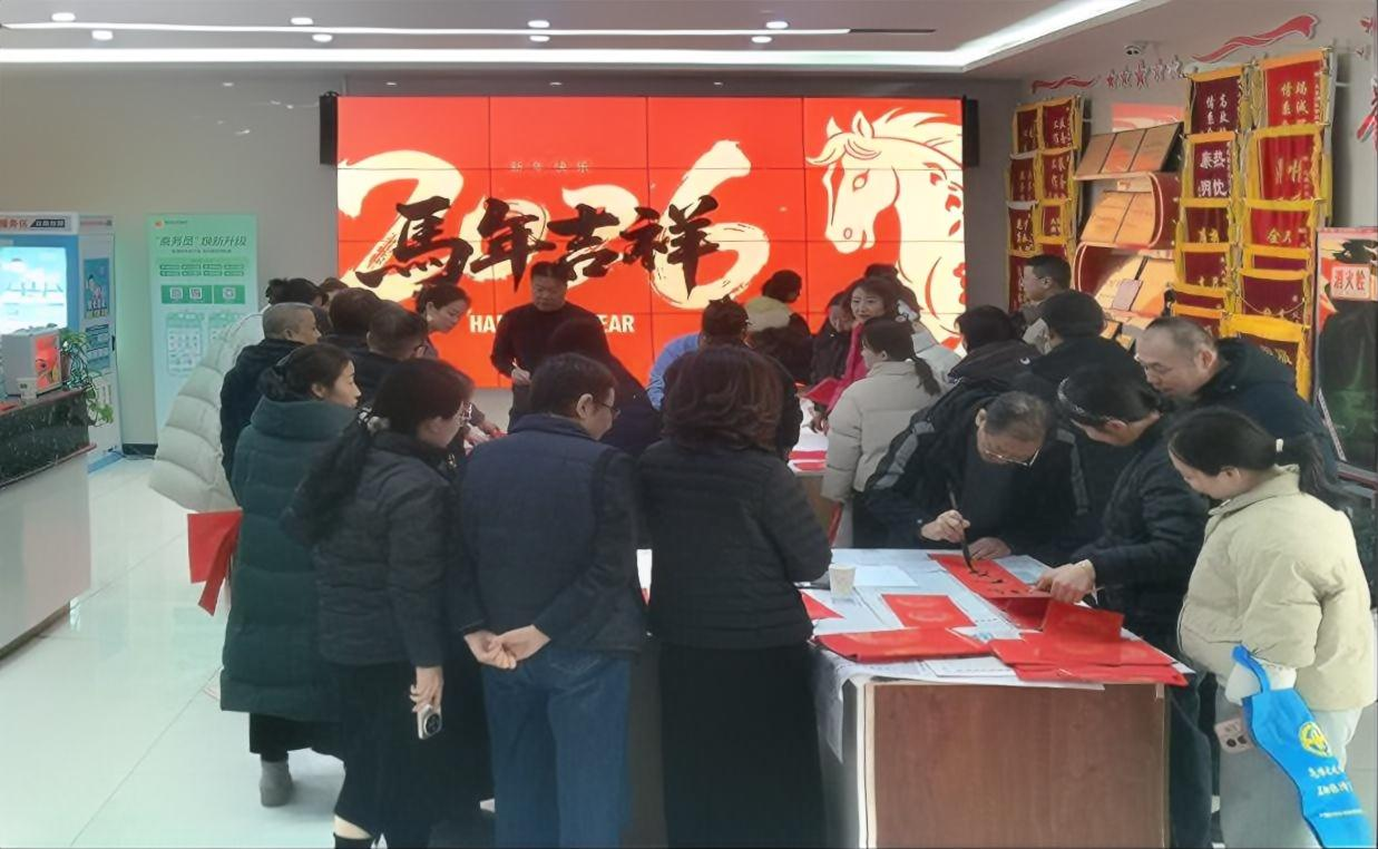 往来办事的群众在高效办结业务后,纷纷驻足参与、有序排队,或静静欣赏书法创作的独特魅力,或精心挑选心仪的春联内容,满怀期待地等候墨宝新鲜出炉,又小心翼翼地将墨迹未干的春联铺展晾晒。政务服务工作人员化身暖心助手,一边协助铺纸研墨、整理晾晒作品,确保每一副春联都完美呈现;一边维持现场秩序、解答政策咨询,同步为等候群众提供帮办代办服务。这种“办事+送福”的模式,让大家在感受传统文化魅力的同时,真切体验到政务服务提质增效带来的便捷与温暖,推动政务服务从“办事窗口”向“暖心驿站”温情转变。