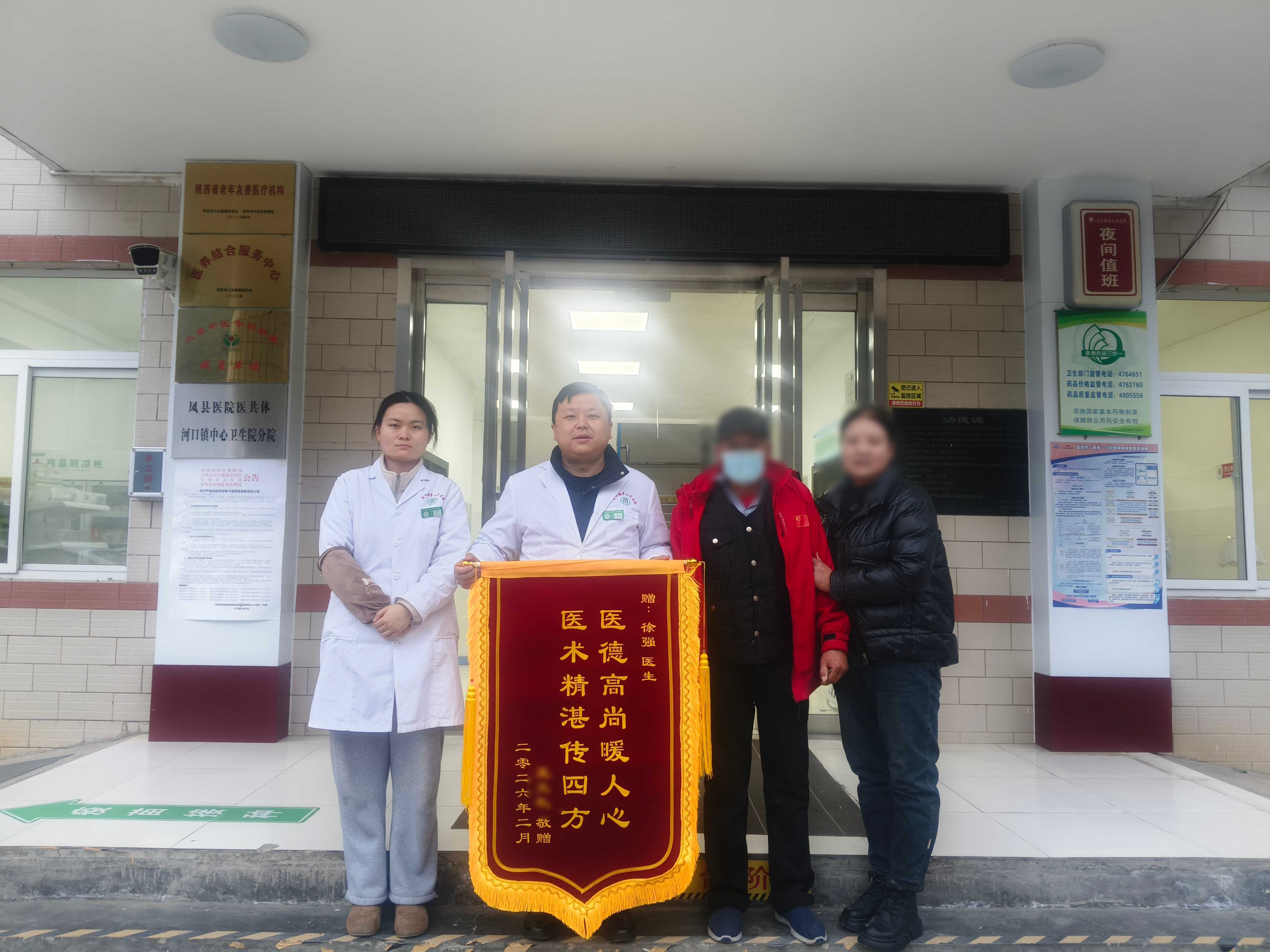 2月9日,患者王先生将一面印着“医德高尚暖人心,医术精湛传四方”的锦旗,送到河口镇中心卫生院院长徐强手上,不仅表达了他的满心感激,更镌刻着基层医者与群众之间深厚的医患情谊。