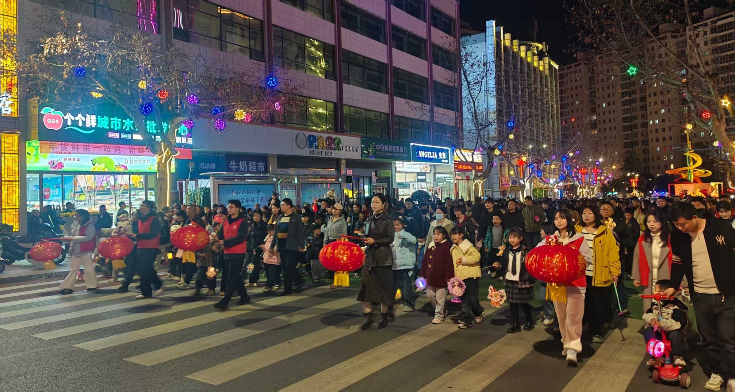 正月十五夜幕降临,花灯游演正式启幕。长长的游演队伍在志愿者与家长的陪护下沿着既定路线缓缓前行,各式花灯流光溢彩、交相辉映,孩童欢笑声、群众喝彩声此起彼伏,沿街市民驻足观赏、拍照留念,处处洋溢着喜庆祥和的节日氛围,充分展现了凤县群众昂扬向上的精神风貌与团结奋进的城市活力。