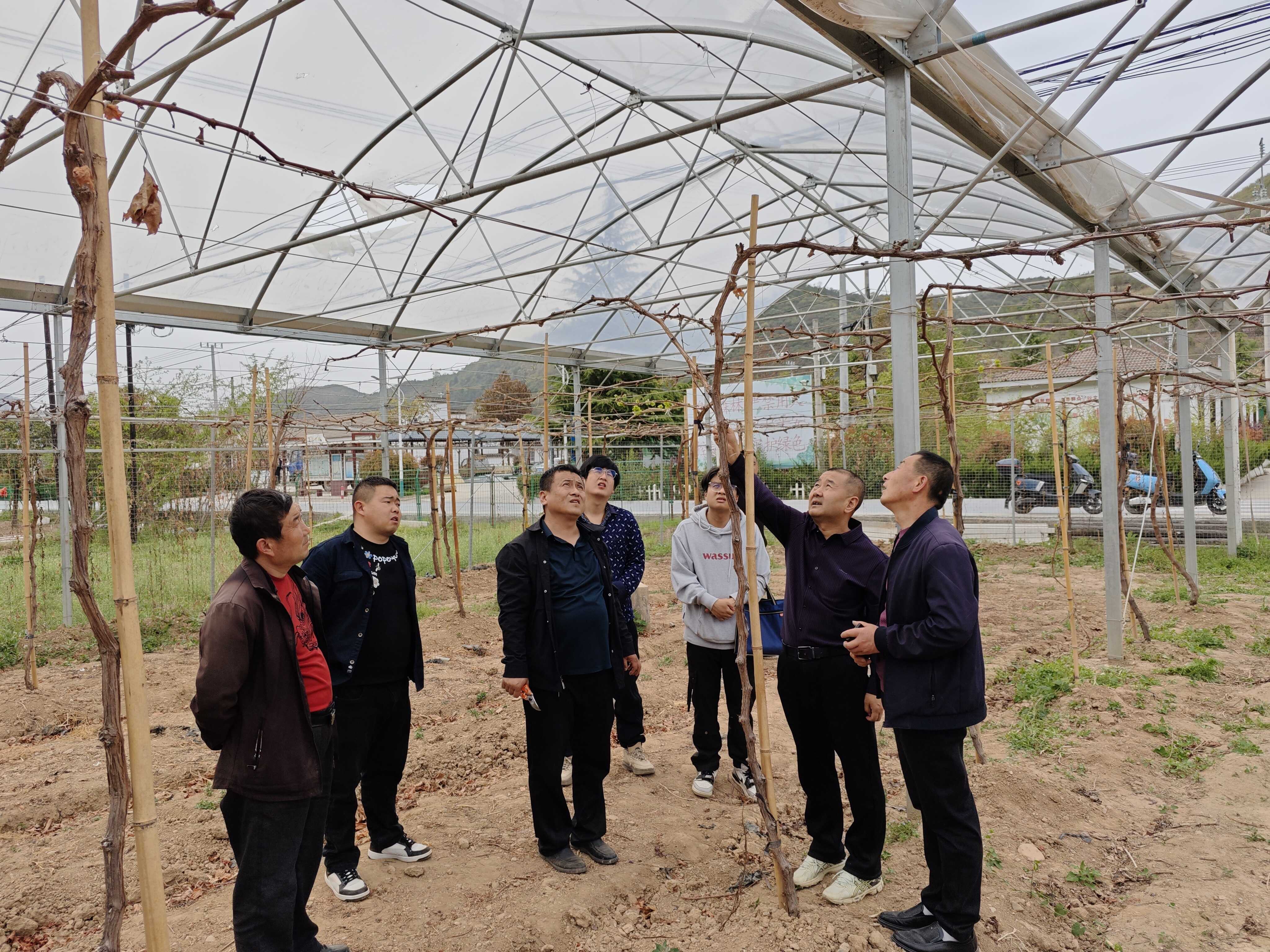 在河口镇岩湾村和核桃坝村2个村集体苹果新优品种果园,李站长结合果园现状实际,找准存在问题,围绕树形管理、拉枝修剪、水肥管理等方面,向果园负责人及管护技术人员进行了细致讲解与实操示范,手把手传授科学管护技巧。随后,前往下坝村村集体新优品种葡萄园,针对在水肥管理、整形修剪及保花保果等方面存在的问题,向果园负责人逐一答疑解惑。