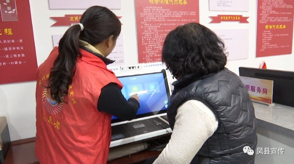 近日,在凤县凤州镇凤州村便民服务中心,工作人员正在给前来办事的村民张女士介绍新安装的公共法律服务终端。