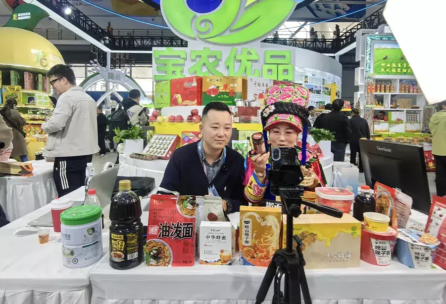 凤县代表团以“一椒一麝绕秦岭,农旅融合绘丰景”为题,携凤椒、苹果、蜂蜜、羊肚菌等特色农特产品参展,积极拓展市场,期间凤县参展商品参加了宝鸡新闻网直播带货活动,进一步提升了产品品牌知名度、影响力。与此同时,凤县还参加了农高会举办的第18届陕西乡村旅游展。