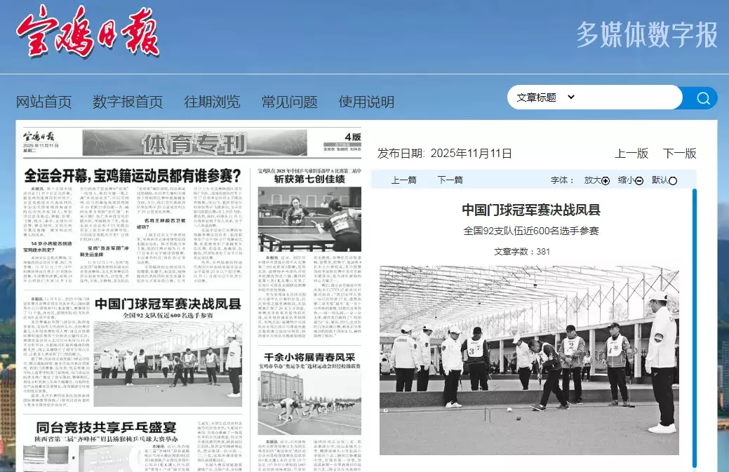 本次赛事由中国门球协会、陕西省体育局、宝鸡市人民政府主办。总决赛设置五人制团体赛和双人赛,通过分组循环赛和淘汰赛两个阶段决出最终名次。赛事组委会引入实时比分系统与AI战术分析平台,为教练团队提供精准的数据支持;线上直播吸引了超百万观众互动,让更多人感受到了门球的魅力。