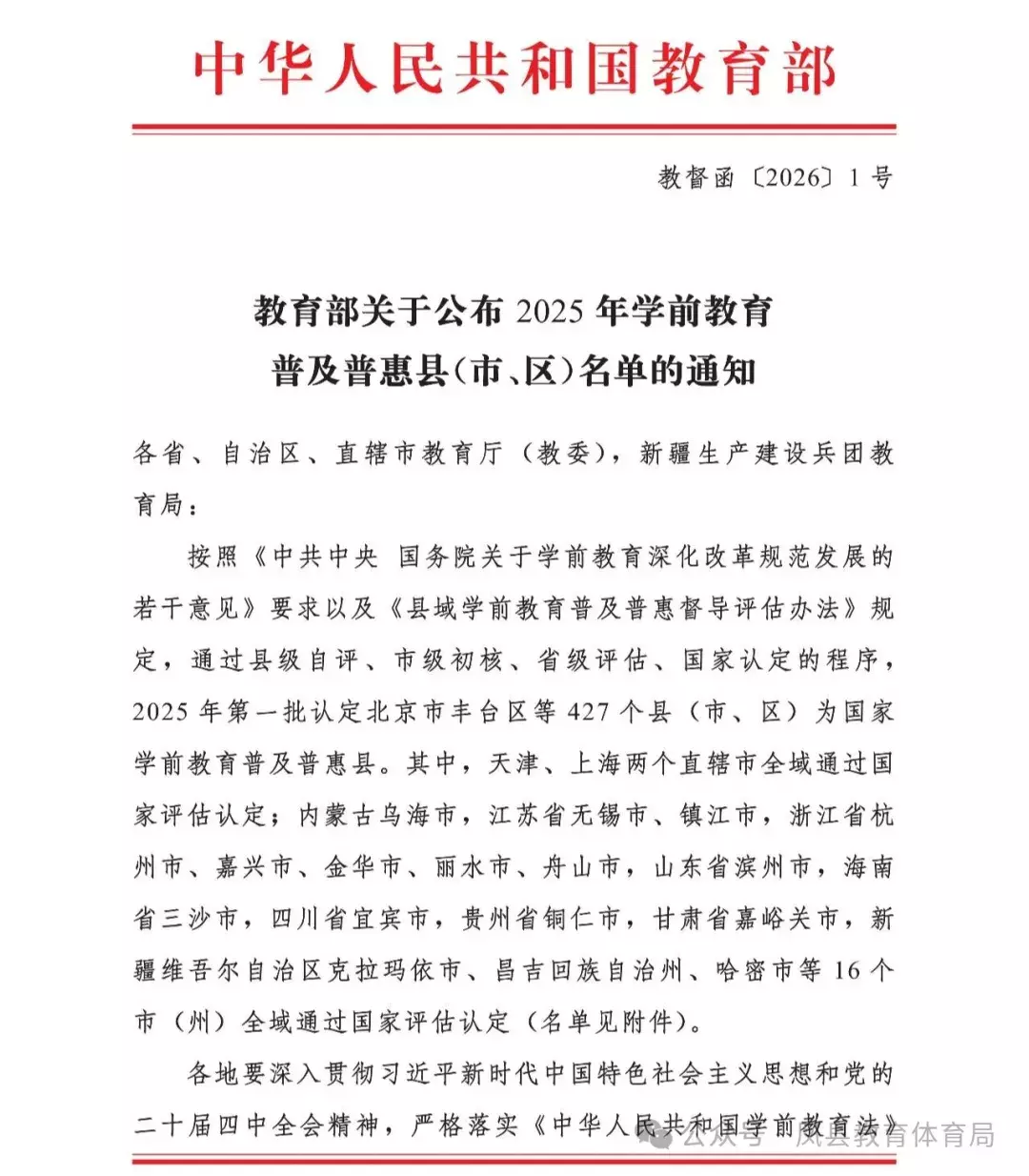 近日,教育部公布了2025年学前教育普及普惠县(市、区)名单,凤县成功创建为国家学前教育普及普惠县。这是凤县继2025年创建为国家义务教育优质均衡发展县之后,又获得的一项国家级殊荣。凤县成为宝鸡市首批完成“两项创建”工作的县之一。