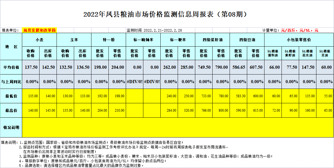 2022年凤县粮油市场价格监测信息周报表(第08期)