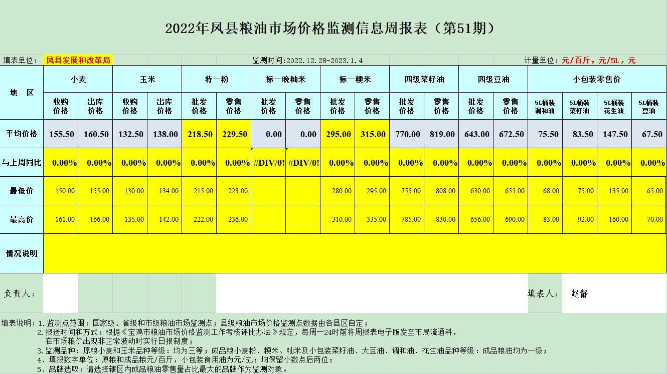 2022年凤县粮油市场价格监测信息周报表(第51期)