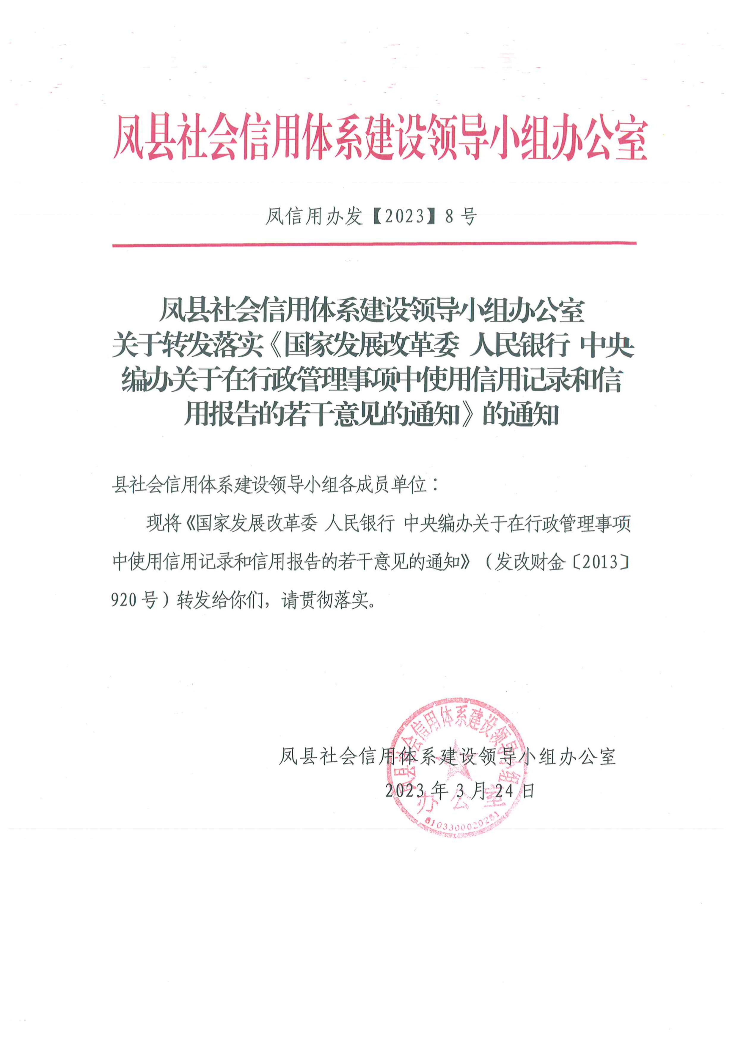 国家发展改革委人民银行中央编办关于在行政管理事项中使用信用记录和信用报告的若干意见的通知
